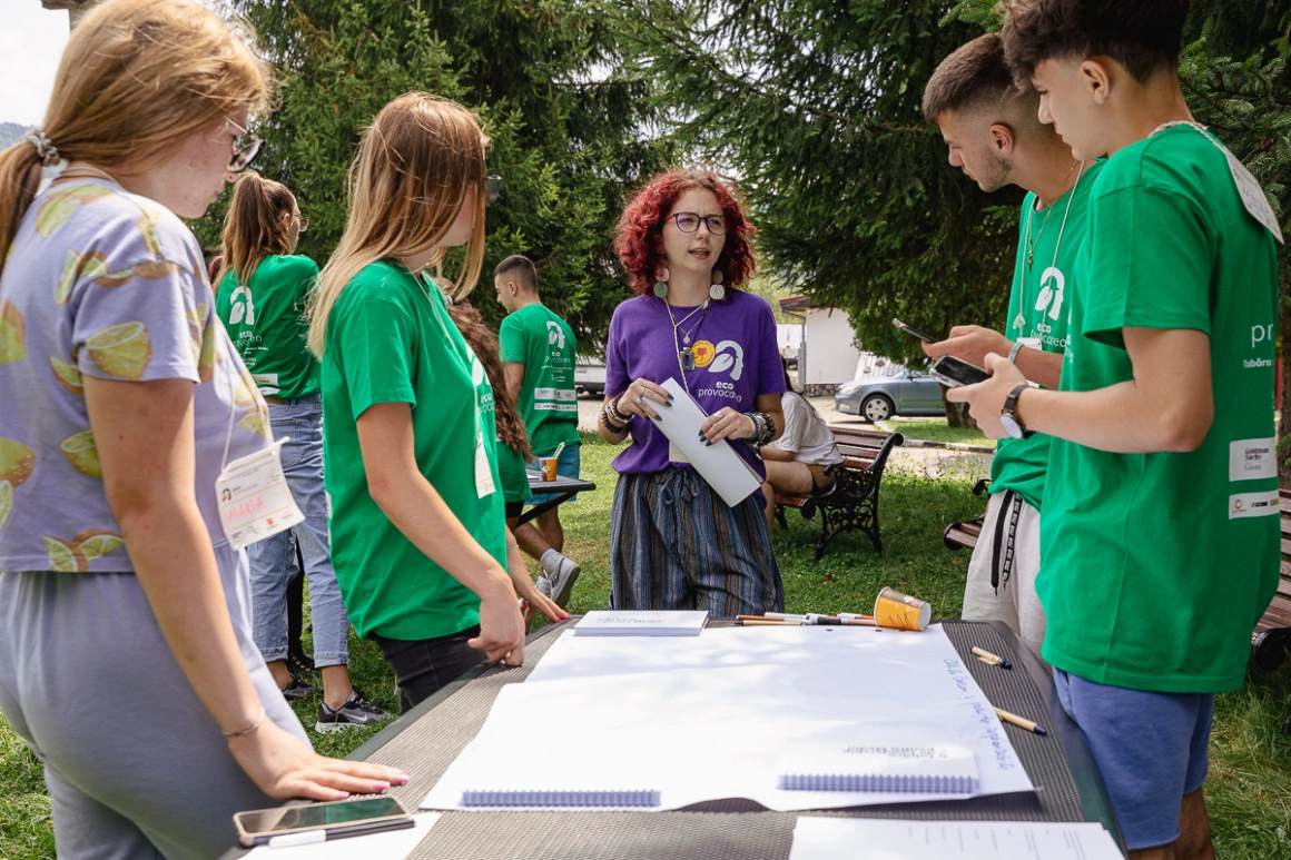 Este a doua zi a taberei de mediu de la Cheia, județul Prahova, la final de august, organizată de ONG-ul Viitor Plus. În grupul Iarinei sunt doar o parte dintre cei 85 de elevi de liceu care au obținut podiumul la Ecoprovocarea, un concurs național de educație de mediu pentru elevi și profesori din școli generale și din licee din toată țara.