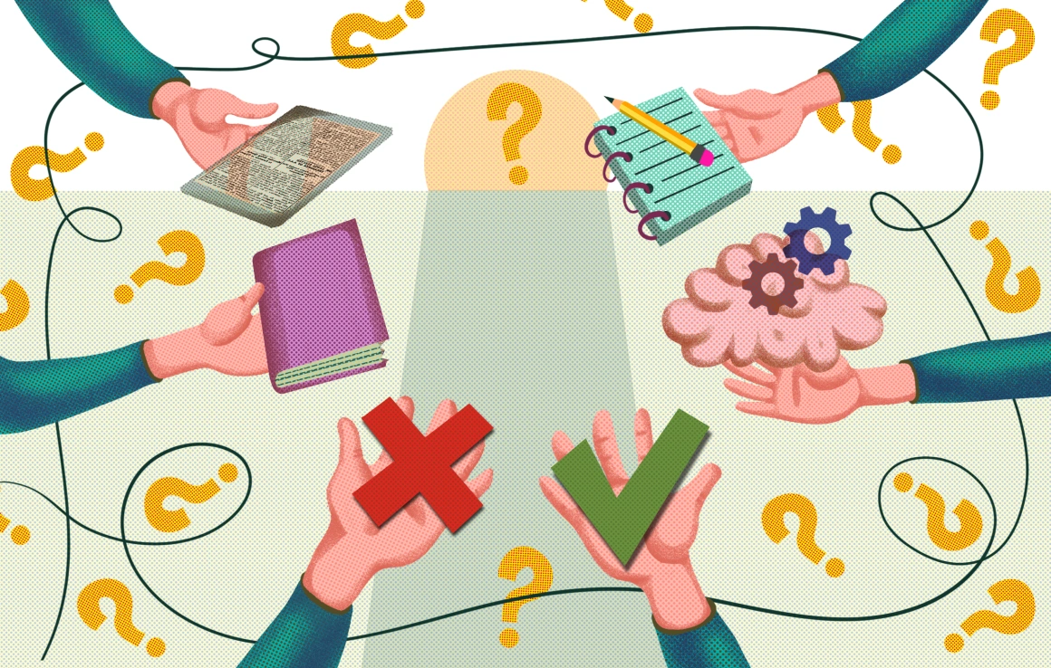 De exemplu, profesorul de istorie le poate cere elevilor să se împartă în grupuri de lucru și să caute informații online – de pe telefonul mobil, dacă nu sunt în sala de informatică – despre un anumit personaj sau eveniment istoric. Își pun împreună întrebări de verificare și discută dificultățile care apar în stabilirea credibilității informației. Astfel, elevii învață că trebuie să verifice din mai multe surse și că până și stilul scriiturii, structura și modul în care este construit site-ul care prezintă informațiile poate ajuta la evaluarea acestora. Așa vor înțelege dacă au de-a face cu un material trunchiat sau complet, părtinitor sau imparțial, cu toate punctele de vedere la liber și surse citate ușor de identificat.