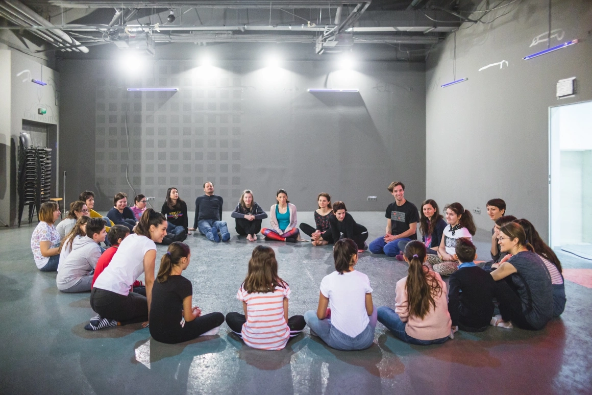 Aproape 15 copii stau în cerc pe podeaua gri a unei săli fără ferestre de la etajul patru al Muzeului Național de Artă Contemporană (MNAC) din București. Tocmai au terminat o oră de exerciții de imaginație, introspecție, auto-transformare și comunicare, și acum își povestesc impresiile. După câteva secunde de liniște, Alexandra, o fată cu părul prins în coadă, spune că nu a reușit să se concentreze și că nu s-a simțit relaxată, apoi își lasă capul în jos și își strânge mâinile în jurul corpului. Cu puțin înainte, băiatul mic de statură cu tricou alb de lângă ea a spus că exercițiile i s-au părut relaxante, iar fata cu ochelari și tunsoare bob care-l urmează povestește că s-a simțit altcineva. Alexandra vorbește încet și se joacă cu mâinile în poală. Explică că e dificil să se simtă în largul ei când e înconjurată de persoane străine și că exercițiile i-ar fi fost mai ușoare dacă le-ar fi făcut alături de profesoara de engleză, care-i este apropiată.