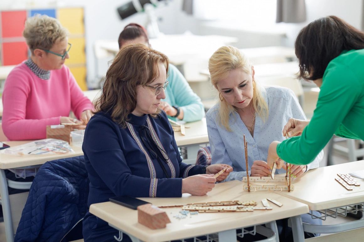 Înainte să le predea celor mici, cadrele didactice din Breaza trec printr-un training susținut de Carolina Pascal, trainer și designer educațional la eematico. La fiecare două săptămâni, 16 cadre didactice care au ales să predea opționalul de Arhitectură, merg la curs într-o unitate de învățământ din Breaza, unde învață de la Carolina fiecare fază a proiectului.