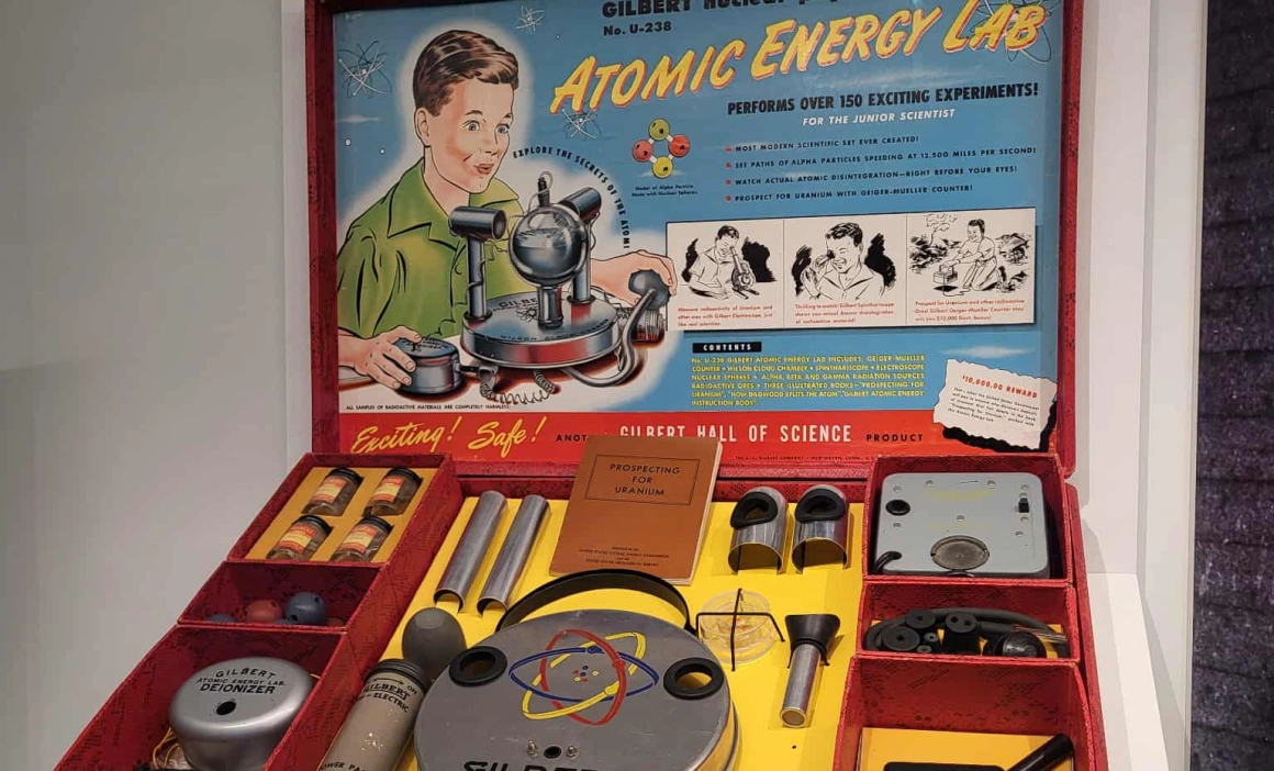 Jocul creat în 1950 de o companie din SUA le permitea copiilor să creeze la ei acasă mici reacții nucleare și chimice. Conținea mostre de uraniu, un contor de radiații Geiger Muller și o cărțulie cu benzi desenate scrisă în colaborare cu generalul Leslie Groves, directorul Manhattan Project - programul SUA din timpul celui de-Al Doilea Război Mondial care a creat bombe atomice. Jocul a fost lansat la cinci ani de la atacurile nucleare de la Hiroshima și Nagasaki. Cinic?
