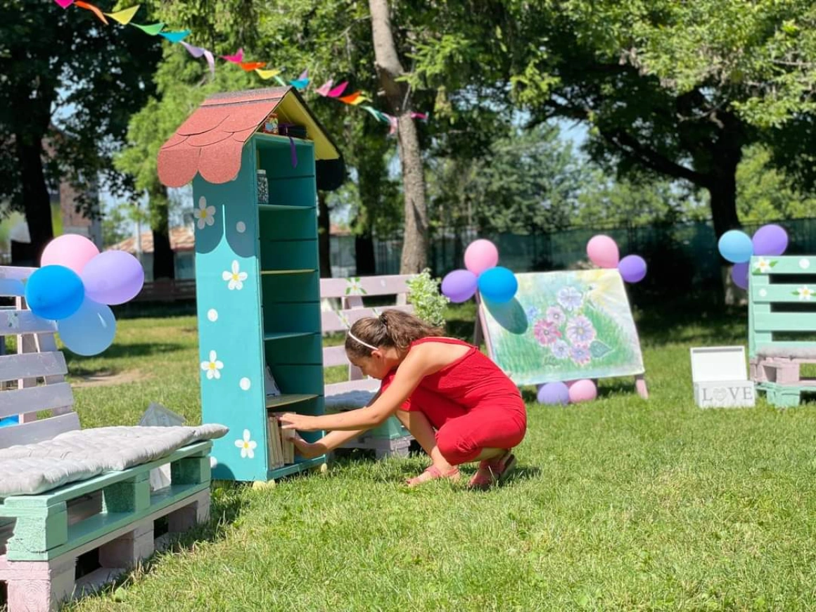 Decorul s-a construit din paleți, canapelele erau comode și așteptau cu nerăbdare să se înghesuie pe ele copii mici și mari. Un pictor-decorator a dat culoare întregului spațiu. Apoi au făcut și căsuța cu cărți, confecționată de oameni din sat. Timp de o lună de zile activitățile organizate s-au petrecut în aer liber, în parcul din fața bibliotecii, de marți până vineri, de la ora 10.00 până la ora 13.00. Peste o sută de copii între 4 și 14 ani au frecventat atelierele.