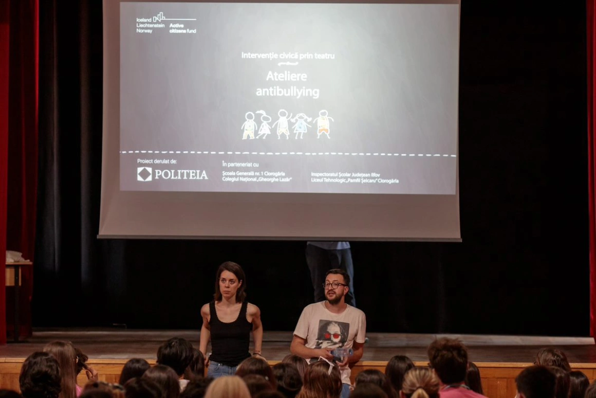 Timp de câteva luni, elevii celor două instituții de învățământ, plus încă o grupă de copii de la Școala Gimnazială nr. 2 din Dârvari, Ciorogârla, au participat la o serie de ateliere de teatru forum organizate de ONG-ul educațional Politeia, în cadrul proiectului intitulat „Intervenție civică prin teatru – ateliere antibullying”.