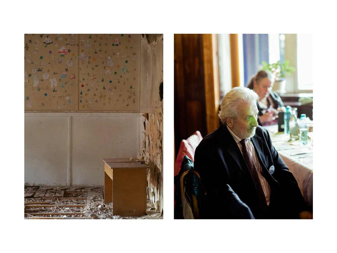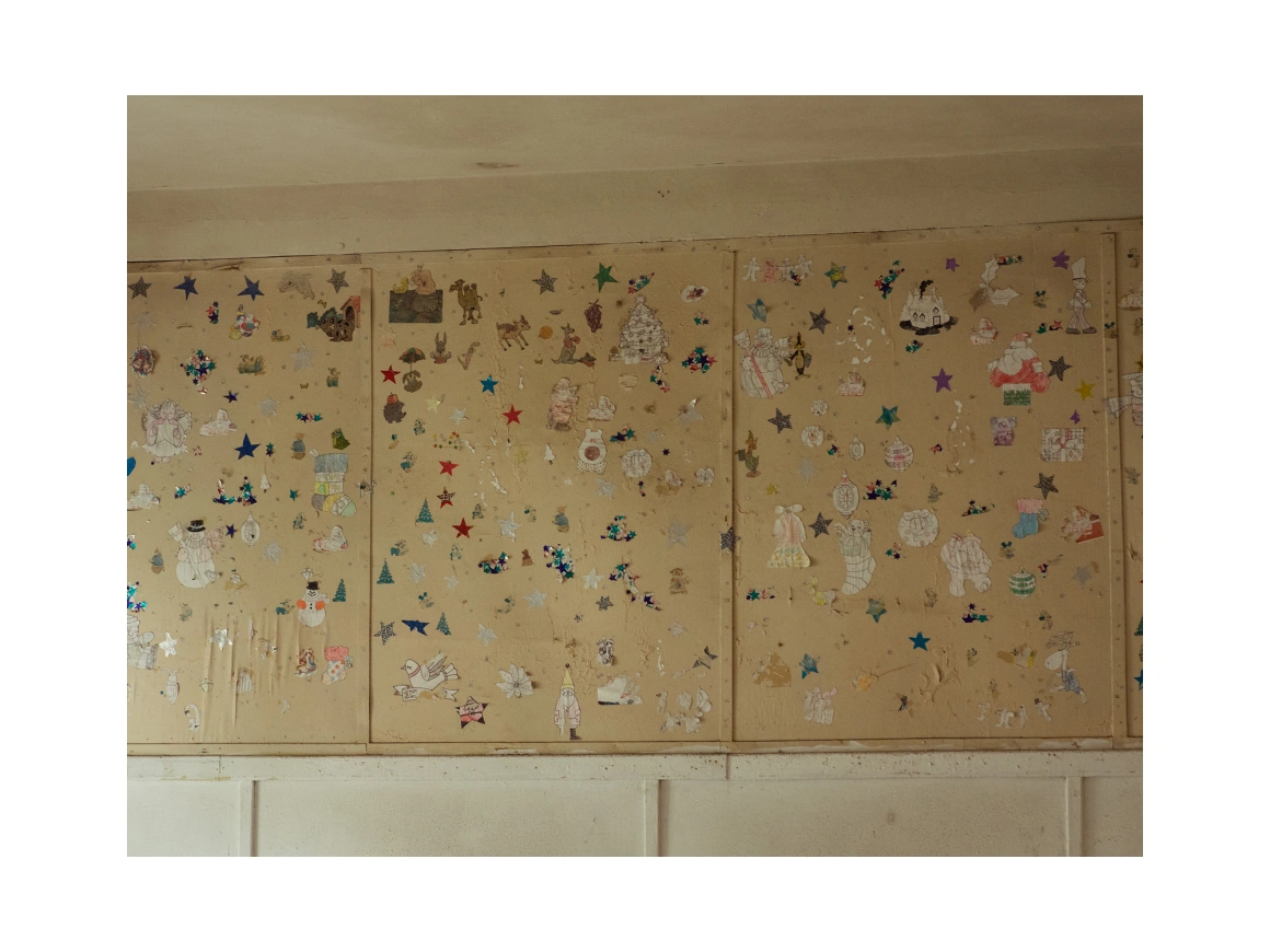 De Ana Maria Ciobanu, fotografii și video de Andrei BecheruÎn clădirea fostei Case de Copii „9 mai” din Bușteni au mai rămas vreo două catedre, câteva cuiere și pereții pictați din loc în loc cu scufițe speriate, lupi și urși înfricoșători, corpuri perfecte de bărbați care aruncă sulițe, ridică greutăți, pedalează, boxează sau șutează. Deasupra câtorva uși mai poți să citești marcajul „Clasă”, semn că pe podelele cu care riști să te scufunzi la tot pasul au stat cândva și niște bănci în care învățau în serii aproape 400 de băieți de clasele I-VIII. Au rămas și câteva modele de traforaj lângă magazia cu materiale pe ușa căreia mai sunt scrise măsurători cu creionul și notițe de tipul „Alin clește șurubelniță 16.03.1998”. În anii ’90, a funcționat aici și o clasă complementară cu profil de tâmplărie, un efort al conducerii casei de copii de a preda o meserie băieților care împlineau vârsta majoratului. Mai poți să găsești din loc în loc mingi sparte, o cutie de Scrabble în limba franceză, carcase de radio și televizoare Diamant, fragmente de jucării mărunte ascunse prin vetre improvizate, semn că peste iarnă s-au încălzit oameni printre ruinele vechiului orfelinat.