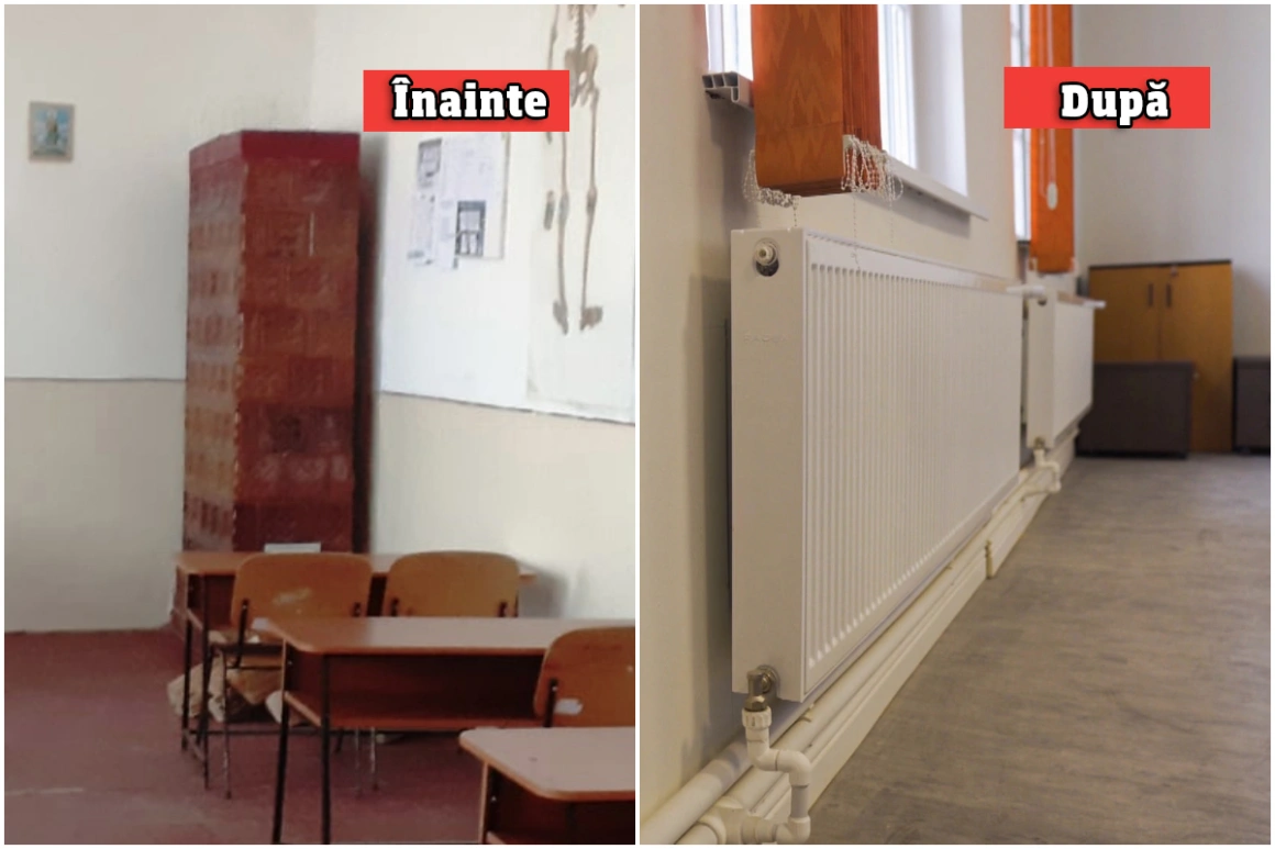 Acum, în școală a fost instalată și o centrală pe lemne. În momentul vizitei, însă, copiii nu începuseră cursurile în clădirea renovată. Învățau în schimburi. Cei mici dimineața, iar clasele V-VIII, după-amiază, de la ora 13.
