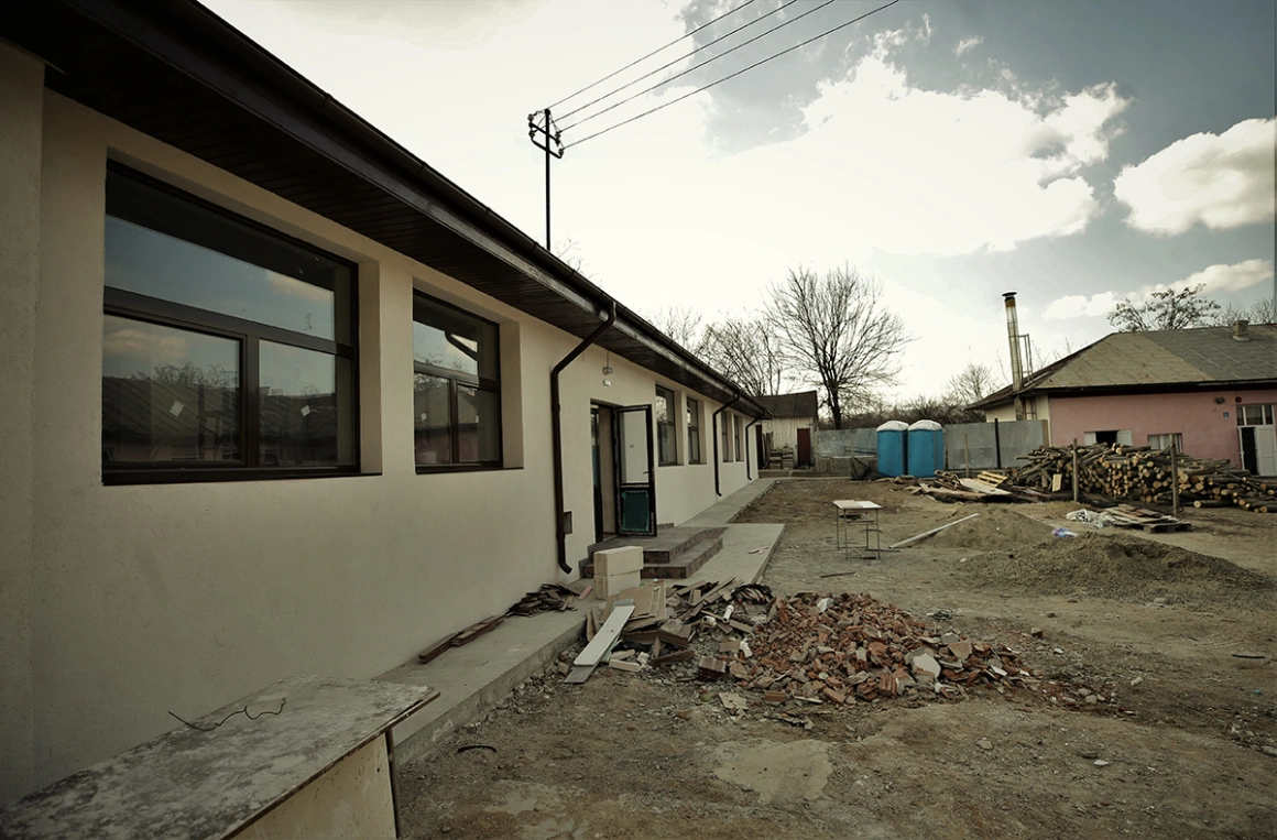 Muncitorii angajați de consiliul local lucrau încă la renovarea unui corp de legătură între clădirea renovată complet de Asociația Bookland și grupul sanitar, construit în urmă cu câțiva ani, în curte.