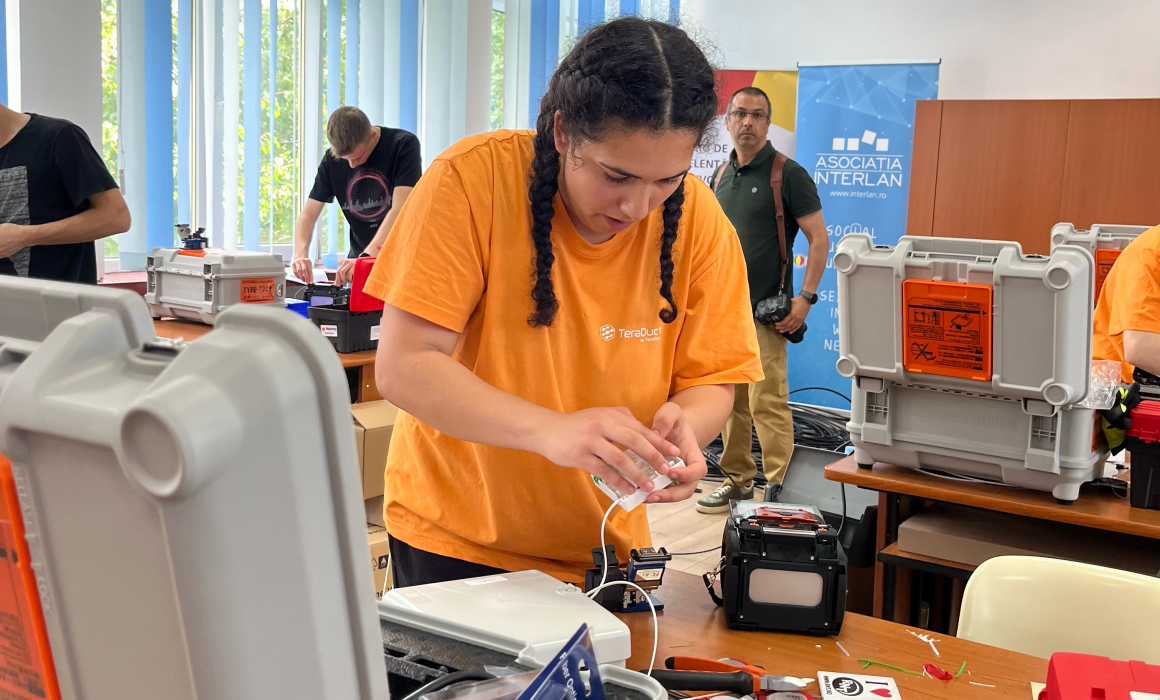 Într-o sală de clasă cu jaluzele verticale albastre, băncile au fost lipite două câte două ca să creeze bancuri de lucru pătrățoase, asupra cărora sunt aplecați zece tineri, dintre care trei fete, care muncesc într-o liniște concentrată la proba de Jonctori Fibră Optică, omul care-ți aduce ție internetul în casă. Proba se desfășoară de doi ani. Pe fiecare masă sunt truse de joncționare, foarfece, un amestec de fire și cabluri, mănuși de protecție, patenți și șurubelnițe. Se apropie finalul probei, așa că niciunul dintre elevi nu ridică privirea când intrăm în clasă, nici când se apropie de ei obiectivul vreunuia dintre fotografii care le dau târcoale.