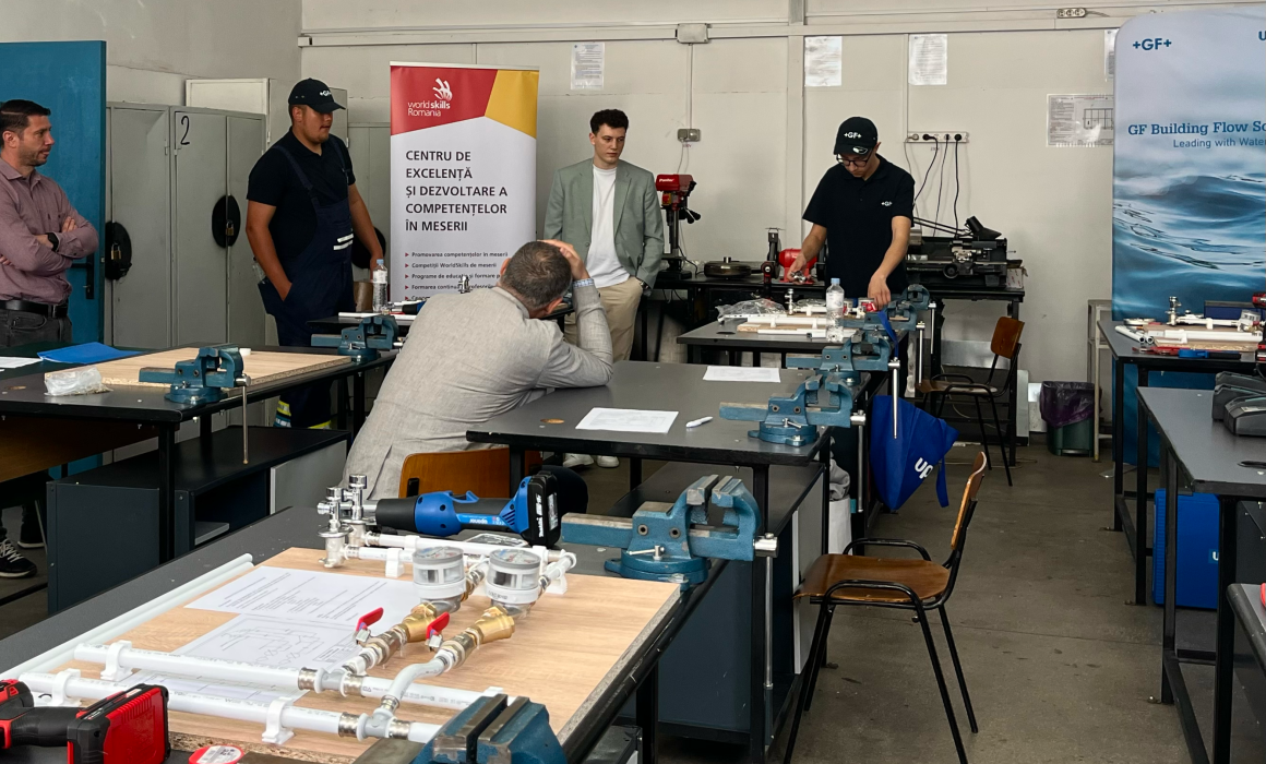 „Profesional și tehnic, competițiile necesită coordonarea mai multor parteneri”, spune Victor Dumitrache, director de program la WorldSkills Romania. „E importantă școala, sunt importante companiile din domeniul respectiv, ministerul care oferă recunoaștere întregii inițiative, ONG-uri ca noi care catalizează colaborarea între toți actorii”. Victor îmi povestește cum compania GF Piping Systems a dotat școlile cu echipamentele și consumabilele moderne care sunt folosite în competiție, care ușurează activitatea instalatorilor, de pildă. „Este important ca elevii să învețe încă de când sunt în școală cum se folosesc aceste echipamente de actualitate. Sperăm ca România să fie reprezentată pentru prima dată într-o competiție internațională de meserii, în secțiunea de instalatori la anul, la Competiția Internațională de la Shanghai”, spune Victor.