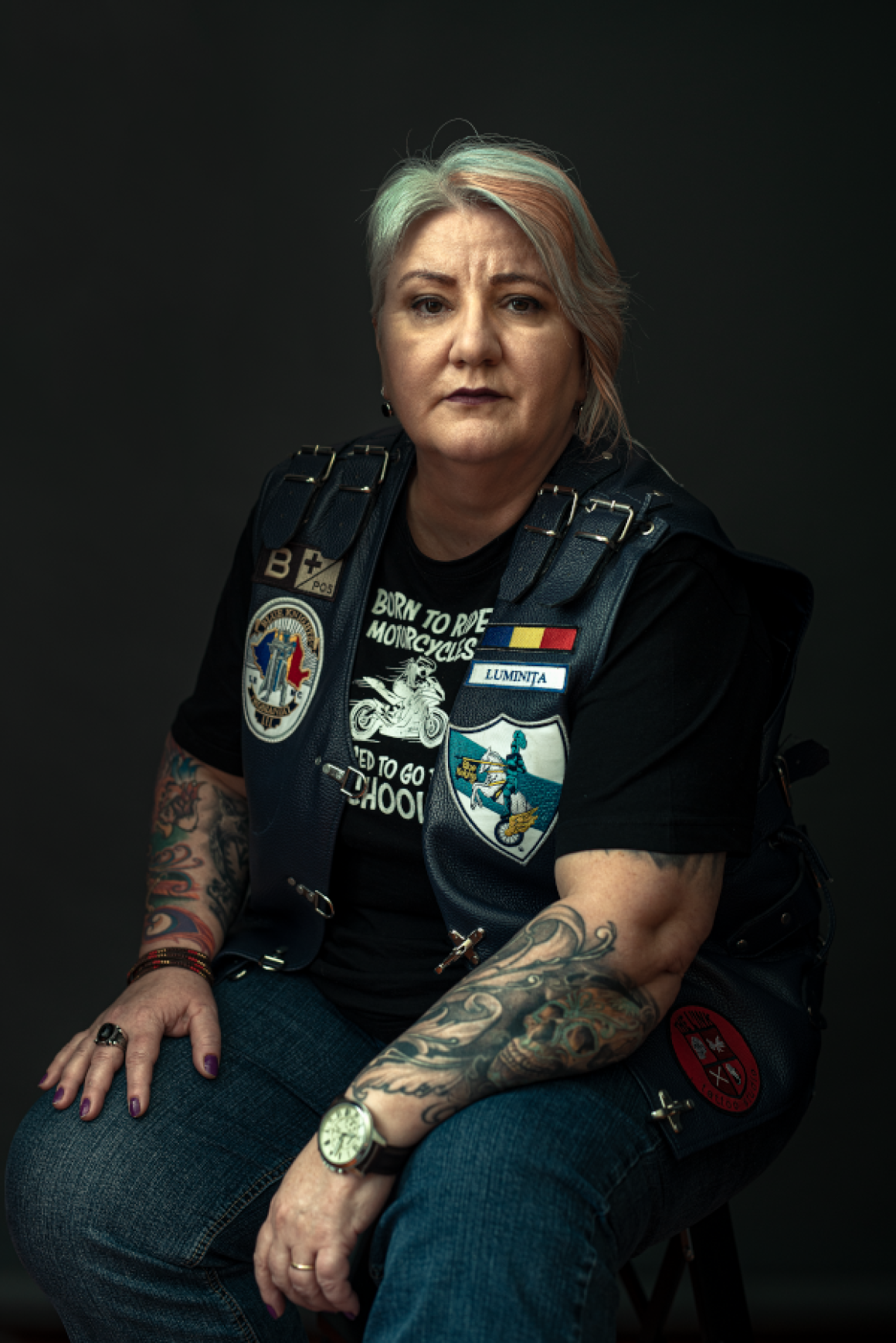 Pe geaca de piele pe care a îmbrăcat-o la ședința foto scrie „Luminița”, deși pe ea o cheamă Lăcrămioara. Îmi dau seama că și eu am fost la un pas să-i spun așa la un moment dat, nu știu dacă subconștientul te face să crezi că numele ăsta i se potrivește mai bine. Cert e că așa au reținut cei de la clubul moto pe care îl frecventează împreună cu soțul ei. Și nu a mai ținut să rectifice greșeala. De altfel, a venit la ședința foto pe motor, deși, din cauza unei probleme cu urechea internă, a fost întotdeauna doar pasager.