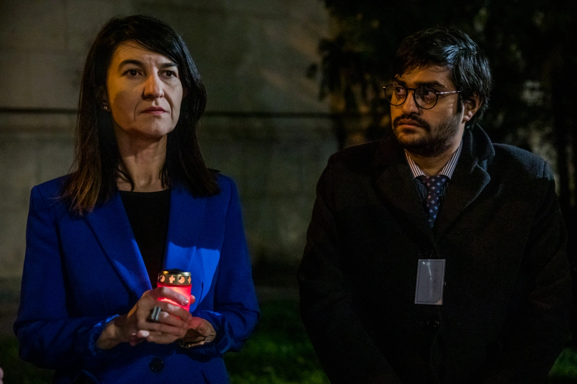 Ministrul Muncii, Violeta Alexandru, se apropie tăcută de grup secondată de Mădălina Turza, preşedinte al Autorităţii Naţionale pentru Drepturile Persoanelor cu Dizabilități, Copii și Adopții. Nu vrea să întrerupă momentul, dar Andreas îi întinde microfonul iar alt participant îi oferă o lumânare aprinsă.