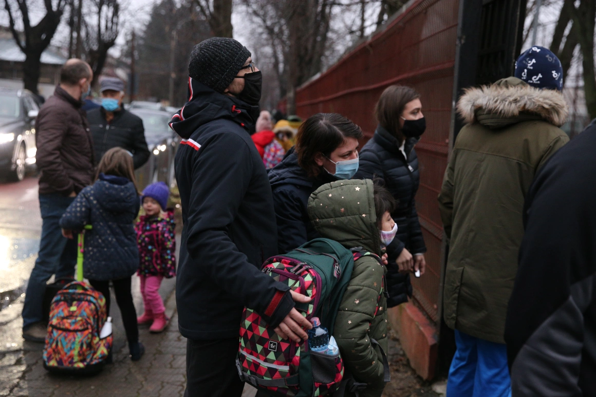 „Lăsați copiii și mergeți părinții, vă rugăm. Lăsați copiii și mergeți, ca să nu se aglomereze”, sunt îndemnurile în buclă ale unei angajate a școlii. „Hai, mai cu viață că a început școala! Haide-hai, inorogule!”, îndeamnă o fetiță care poartă o diademă cu un corn în frunte, poate pentru noroc. Este prima zi de școală din al doilea semestru, dar e ca și cum ar fi prima zi din an. Părinții se dau cu greu plecați din poarta școlii, fac câțiva pași și apoi mai aruncă priviri prin gardul de sârmă, poate mai surprind o mână fluturând sau un rucsac colorat.