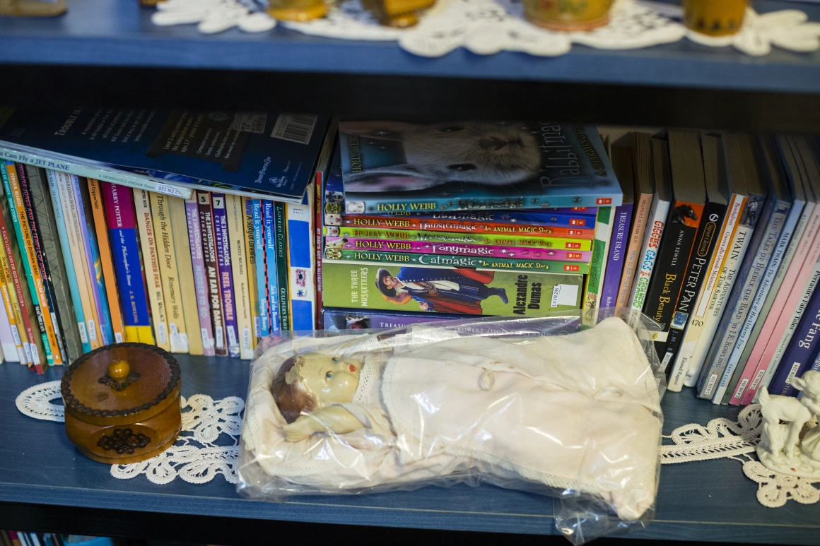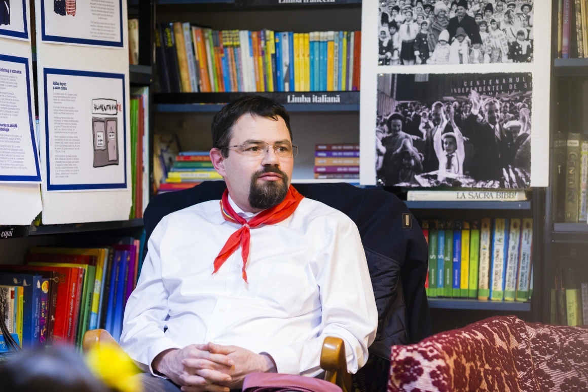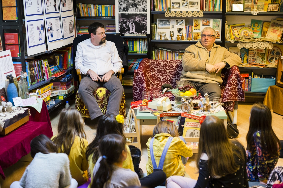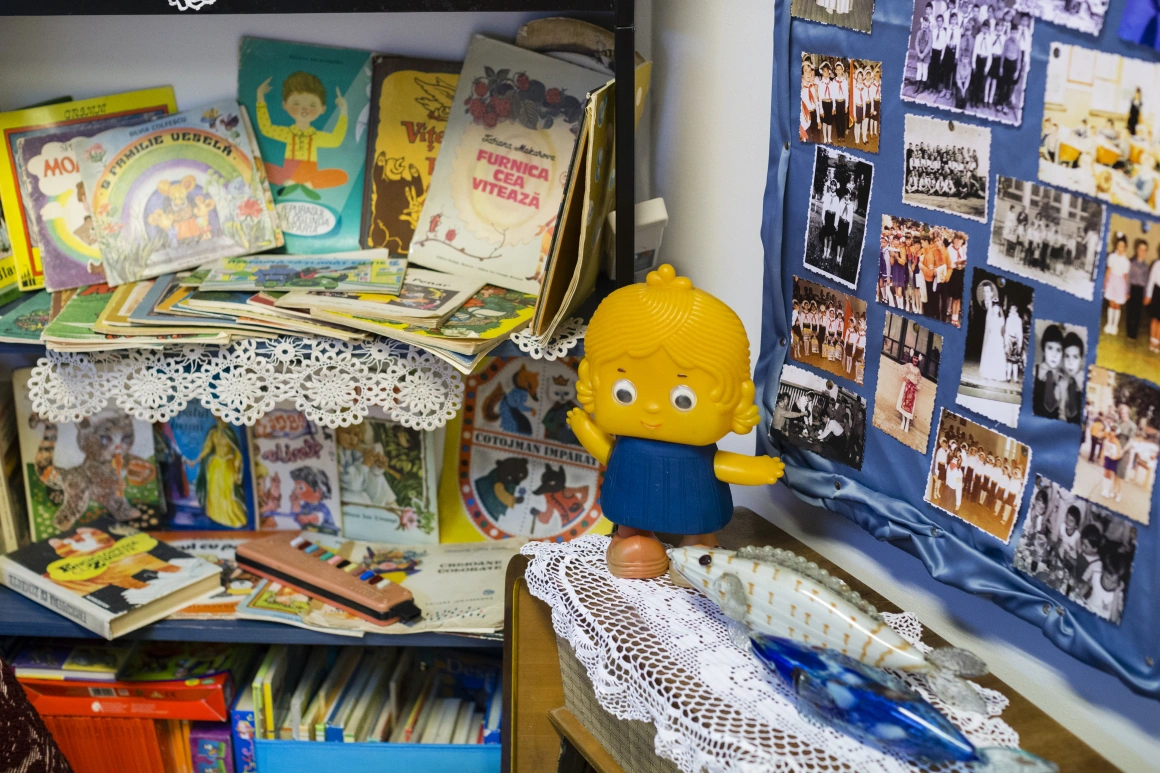 Carla Banu, bibliotecara școlii, a transformat spațiul într-o sufragerie comunistă și o cameră de copil, așa cum arăta ea acum 30 de ani, cu materiale alese de la Muzeul Consumatorului Comunist, cu obiecte aduse de bunici și părinți și cărți din colecția personală. „Pentru copii a fost foarte fain să descopere lucruri printre rafturi, că n-am pus totul la vedere, câte o cutie cu bani de pe vremea aia, fotografii vechi. I-am invitat pe copii să ne descopere pe noi la vârsta lor”.