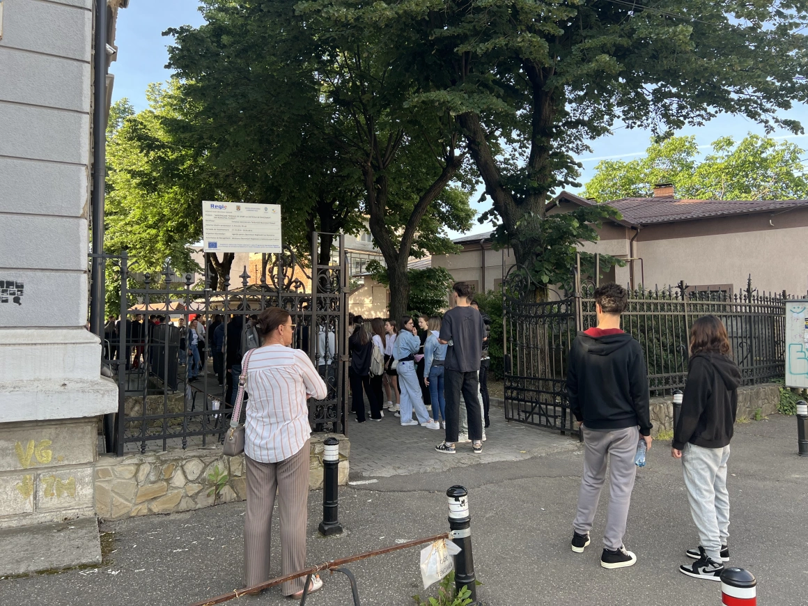 „Ai învățat, mă?”, se aude o voce dintr-un grup de băieți. „Nu”, îi răspunde cel întrebat, cu mâinile în buzunarele pantalonilor scurți pe care îi poartă în prima zi de examen. Într-adevăr, soarele nu s-a ascuns și a ridicat temperaturile până spre 30 de grade Celsius la prima probă.