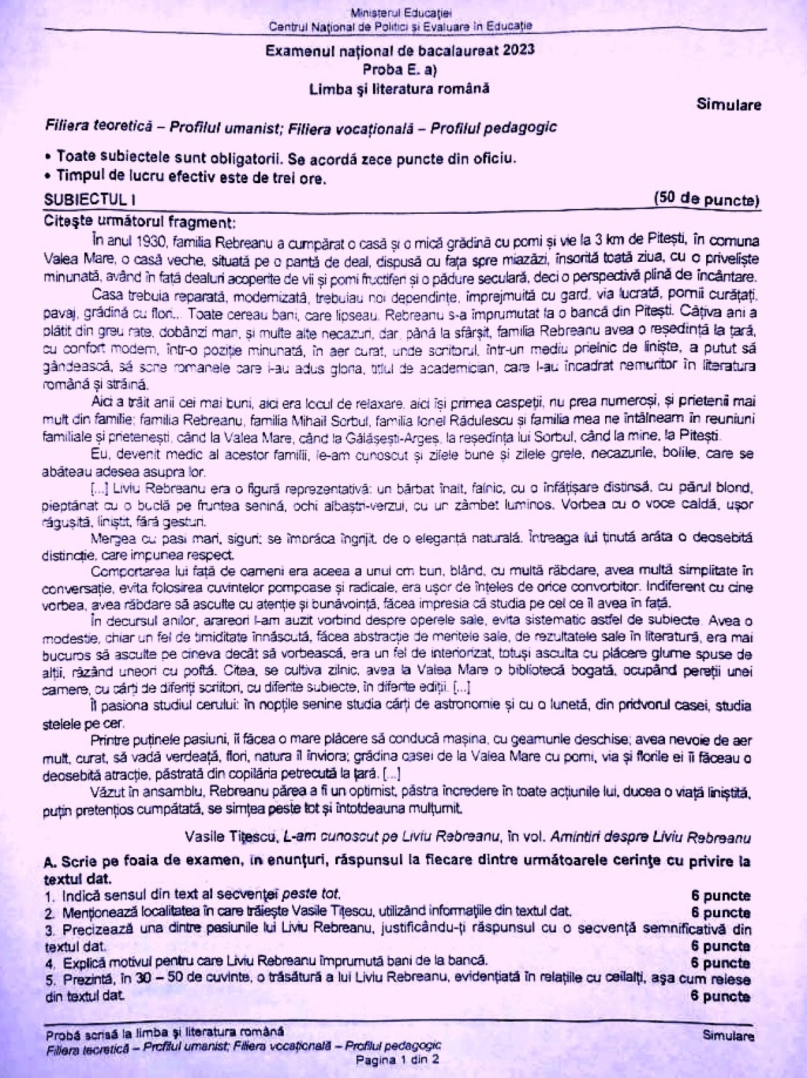 Astăzi au fost reproduse exact condițiile unui examen, chiar dacă rezultatele obținute la simulare nu se contestă și nu se trec în catalog.