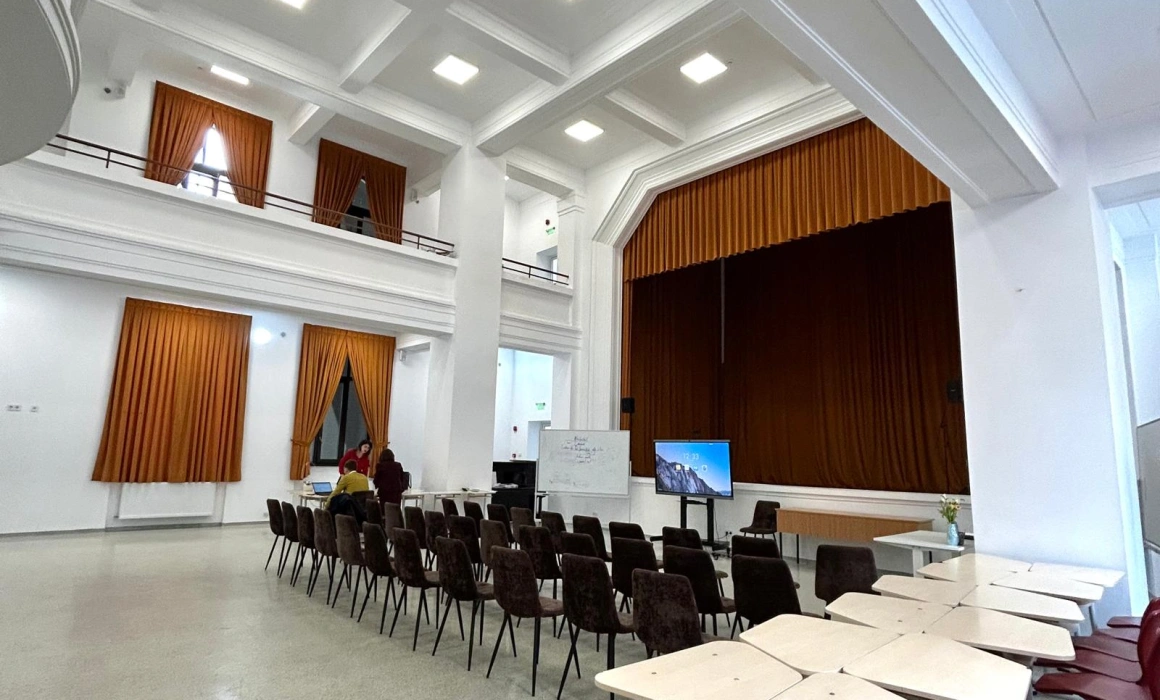 Sala se umple curând, iar scaunele rup rapid rândurile și formează mici celule cu bănci în mijloc. Profesorii, părinții, elevii și echipa de proiect s-au reunit să celebreze luni întregi de activități.