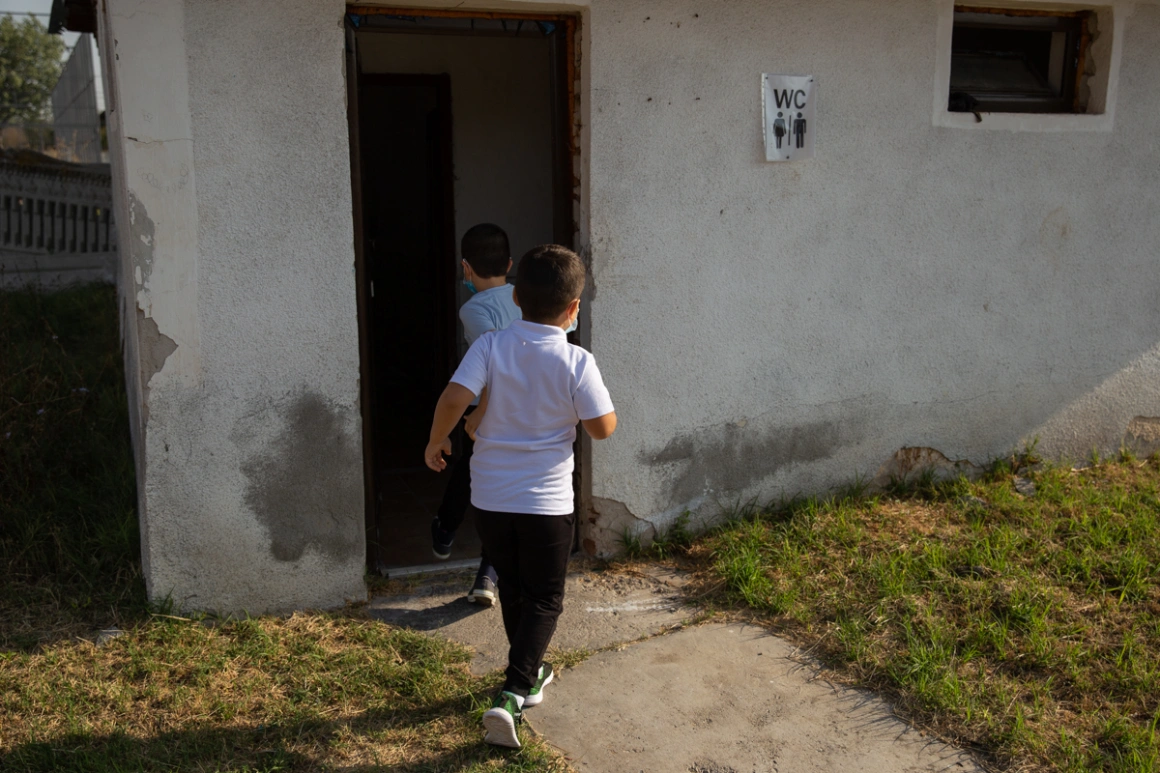 Foto: Elevii din Bucinișu merg la toaletă în curtea școlii