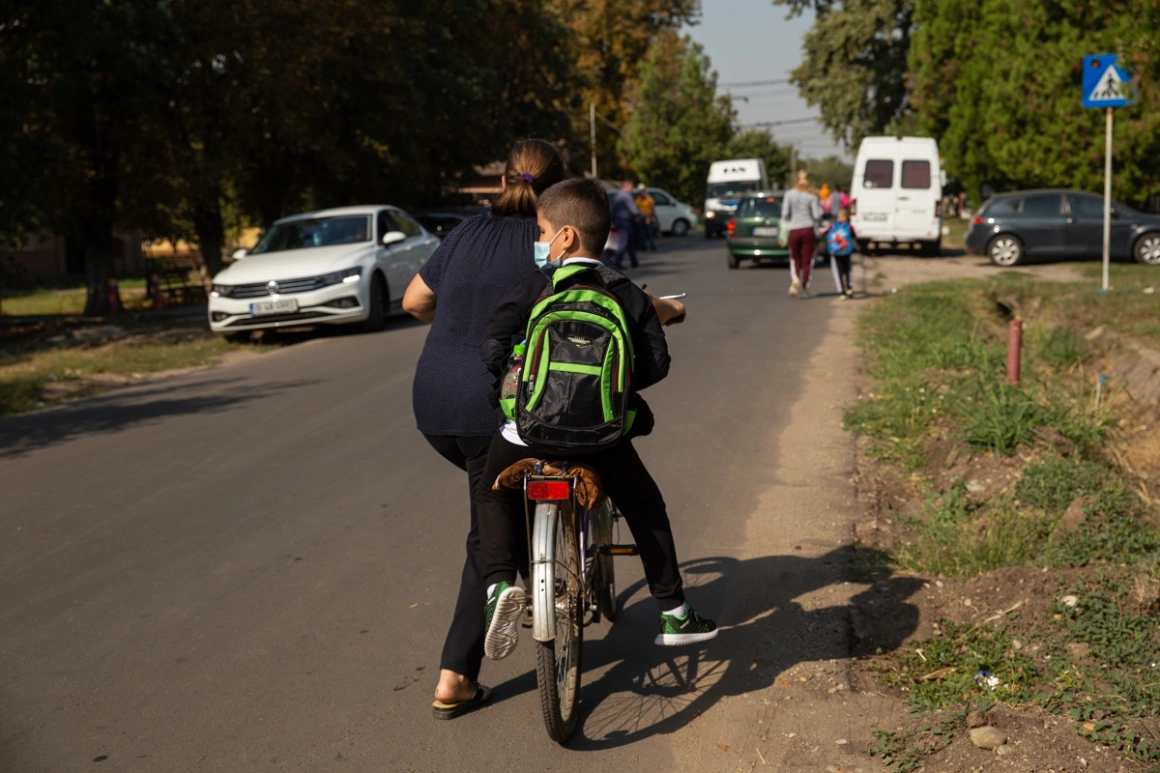 Alexandru și Grigore sunt elevi în clasa a VIII-a la Școala din Bucinișu, Olt. Toți părinții din școala lor au votat să se înceapă școala în scenariul verde, cu toți copiii la ore, că nu aveau toți pe ce să facă școală online. Băieții încep orele la prânz, după clasele primare.