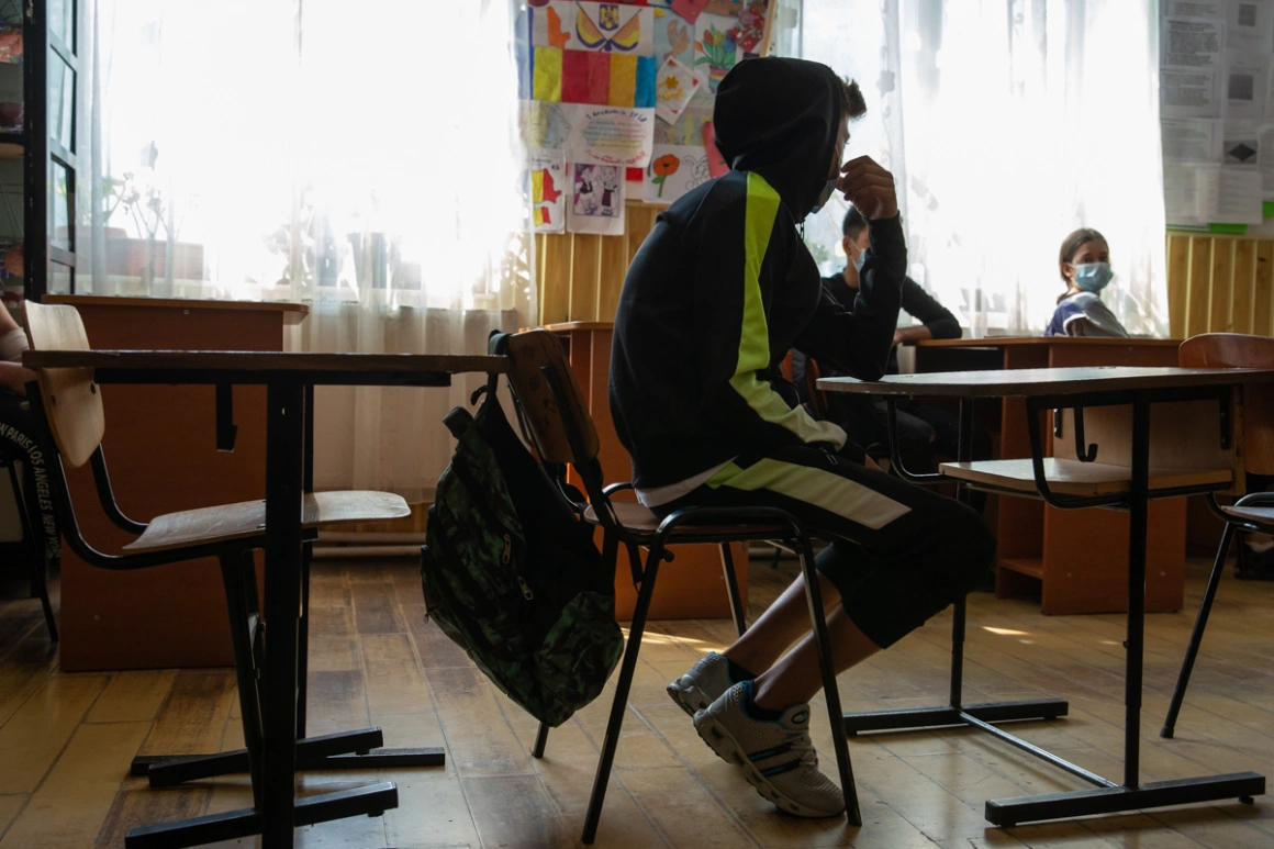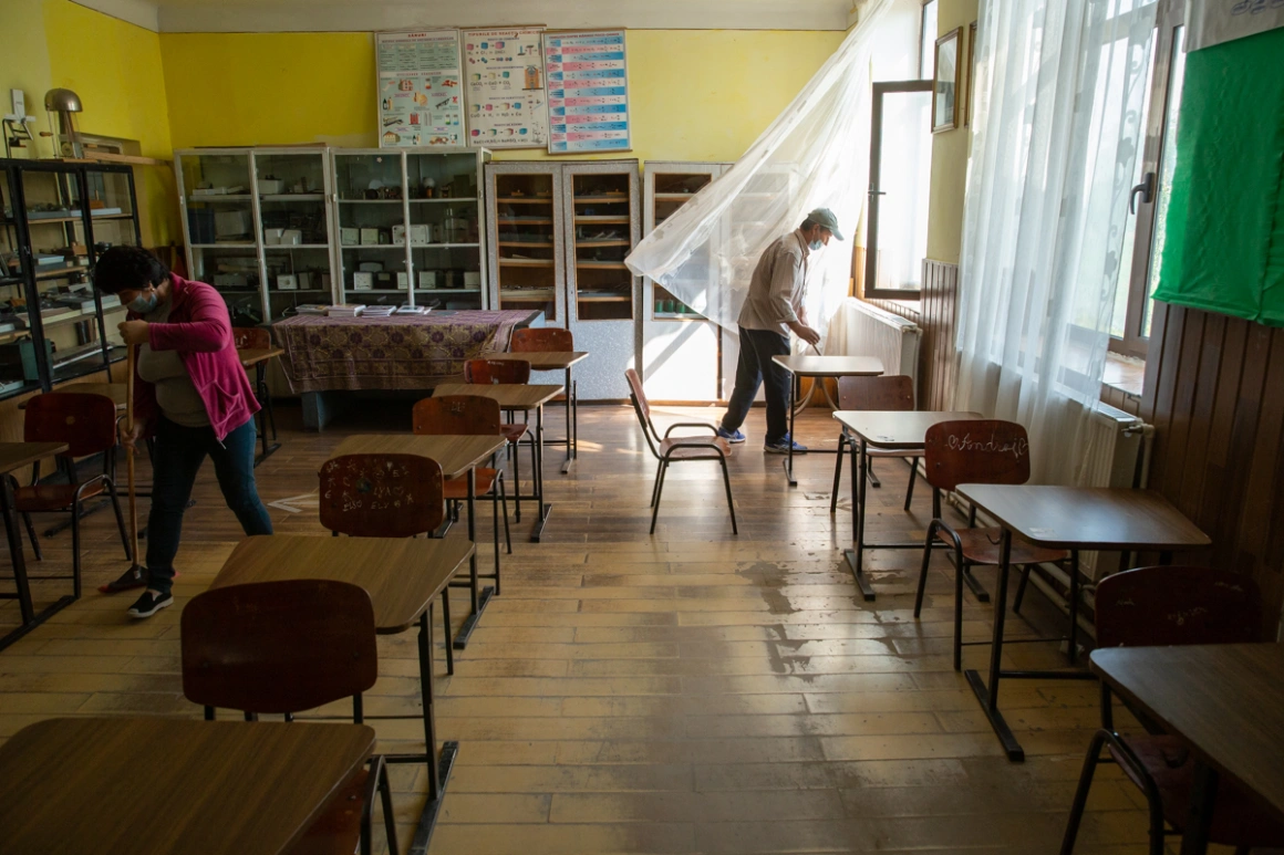 Foto: Elevii de la școala din Bucinișu vin la școală în schimburi, din cauza pandemiei
