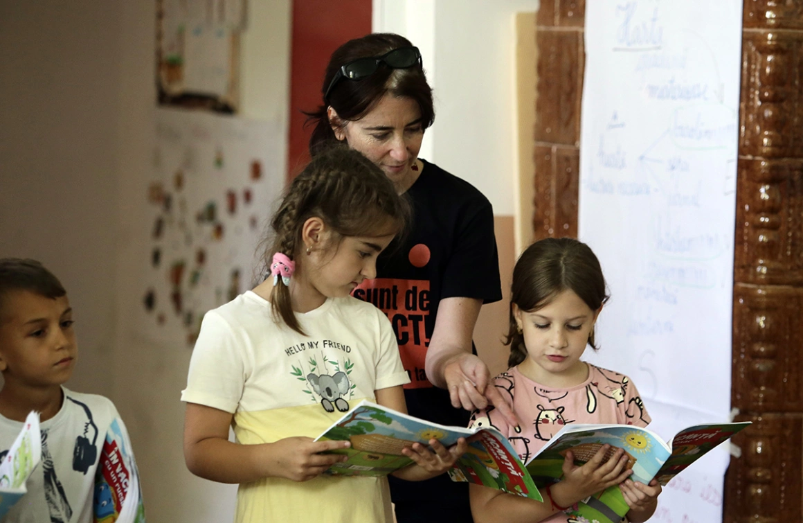 Școala de vară a Lilianei înseamnă azi și o mică sponsorizare, copiii primesc o masă caldă, cărți, materiale didactice colorate. Și cel mai important, exersează citirea și scrierea, îi aduce la zi pe unii dintre elevi.