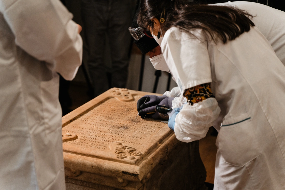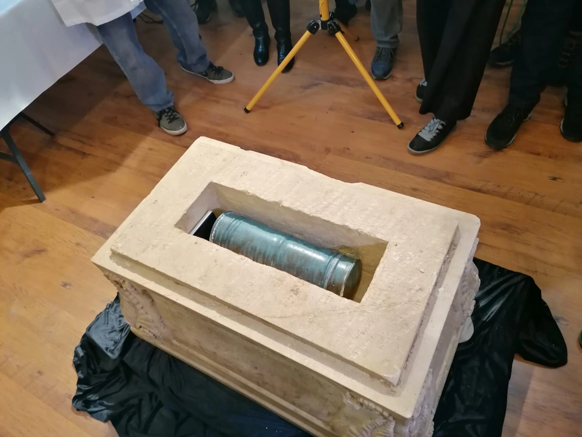Când au dat peste cutia din calcar, colegii de pe teren au sunat-o pe Erika Oniga, muzeograf la Muzeul Județean Mureș, și au întrebat-o ce ar putea să fie. Aceasta le-a confirmat că e piatra de temelie.