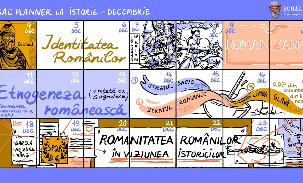 Cu câteva săptămâni înainte de vacanță, vă propunem o parcurgere a primelor capitole de istorie. La propriu. Profesoara Gabriela Nedelcu vă ajută să învățați în următoarele zile despre războaiele geto-dacice, romanitatea românilor și procesul de formare a poporului român. Sfatul ei: învățați în ordinea cronologică a evenimentelor, nu în ordinea din manual. E mai ușor când istoria curge ca o poveste.