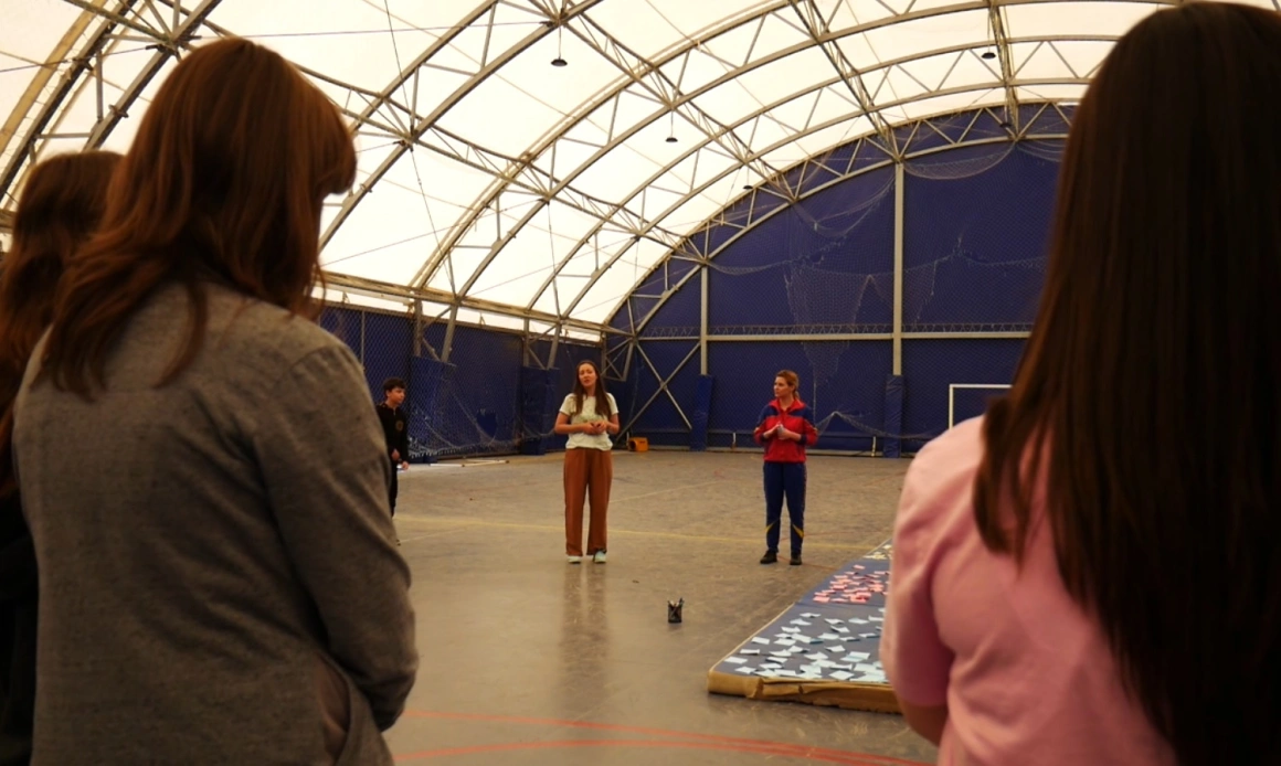 Copiii adunați în jurul ei și al Cosminei au notat pe post-it-uri colorate ce așteptări au de la activitate. „Să fie frumos”, „să iasă bine”, „să nu ne lovim”, au scris câțiva.