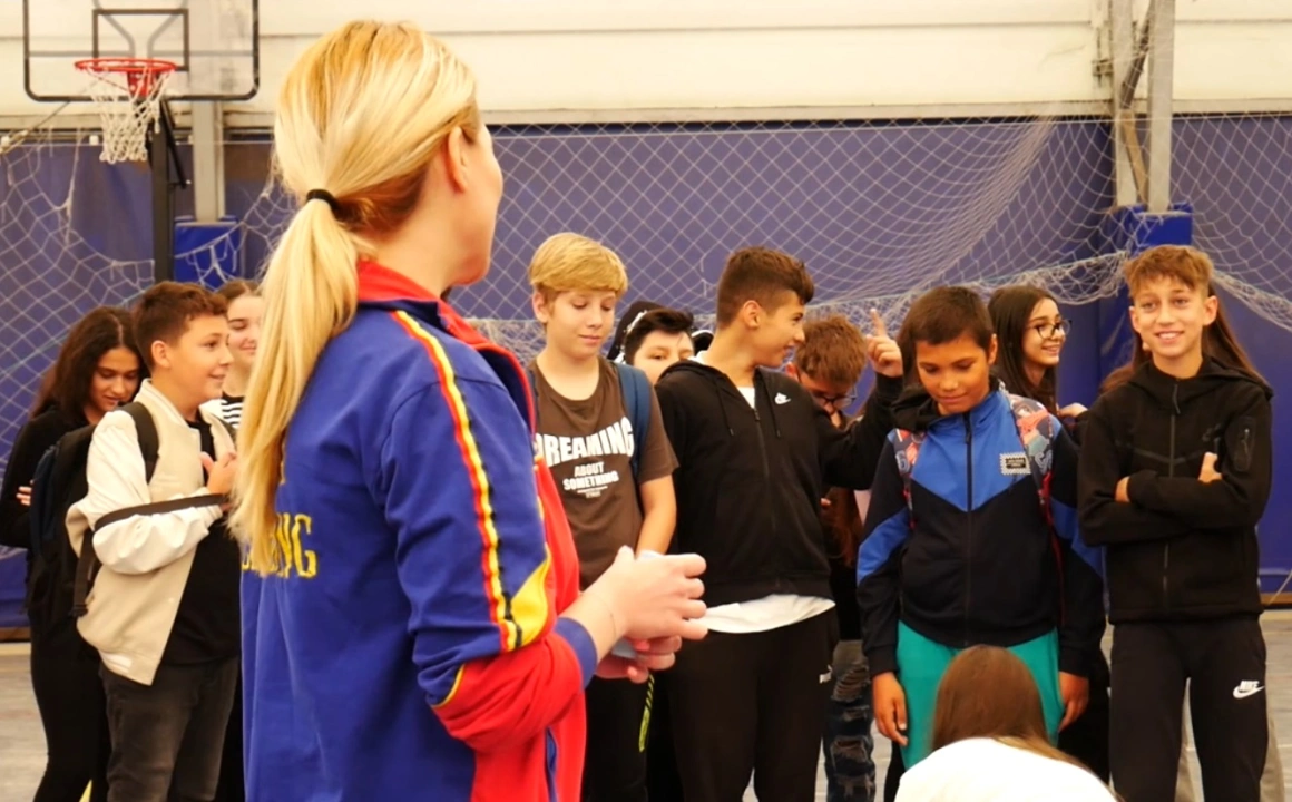 Suntem în sala de sport a școlii din Gruiu unde tocmai a încheiat o activitate de orientare școlară la care a adus-o pe Maria Alexandra Fulga, campioană la kickboxing, în fața elevilor. Tânăra de 32 de ani le-a povestit cum a îmbinat învățatul cu antrenamentele, cum a făcut și o facultate și astăzi antrenează viitori campioni.