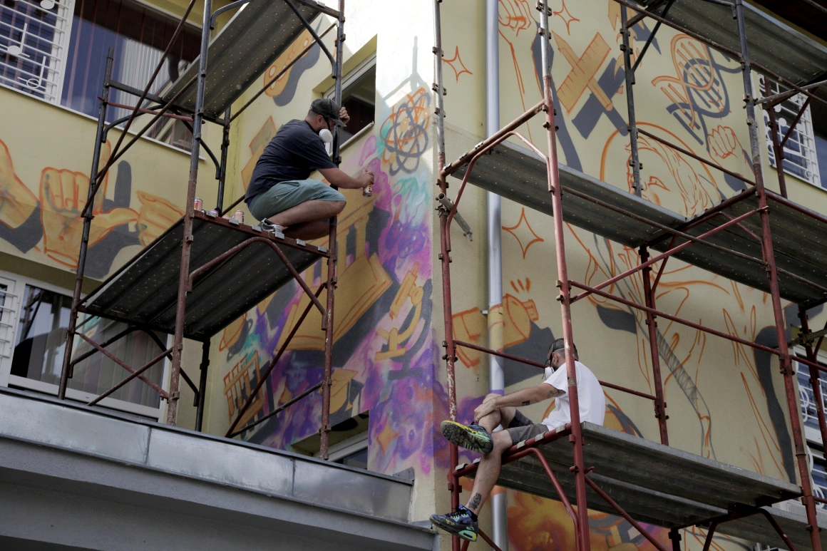 Cum schimbă o pictură o comunitate. Doi artiști au făcut o murală pentru elevii cu deficiențe de la un centru din Timișoara, ca să-i ajute să viseze