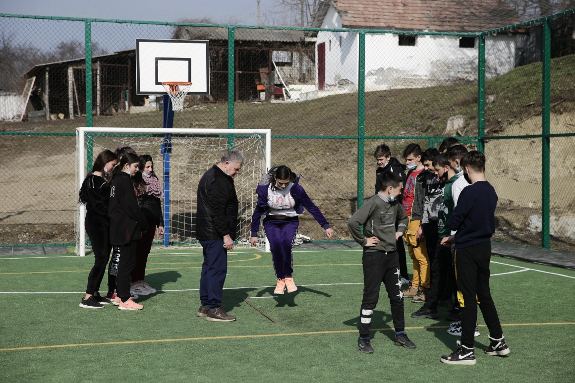 Povestește că, împreună, au construit și un teren de sport pe care copiii se adună și în weekend să joace. Inclusiv fetele joacă fotbal pe terenul nou. „Ca apărătoare, în poartă”, specifică Andra.