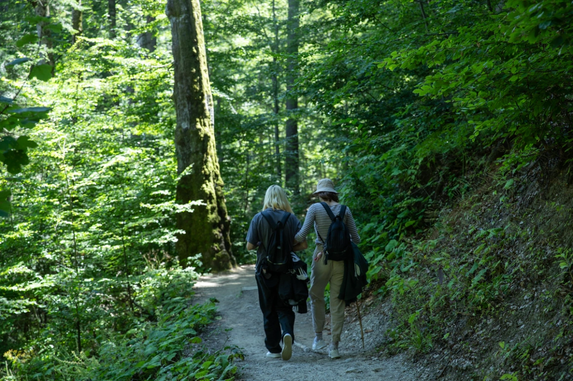 Cu o cameră foto atârnată de gât, Miruna privește brazii perfecți. Orice îi atrage atenția: un pod de lemn, niște fire de iarbă, o gâză grăbită. Cele două surori participă cu alți 17 adolescenți din Galați, din centre de plasament și case de tip familial, la tabăra organizată în Bușteni de Asociația Ajungem Mari. Toți cară un rucsac sau o geantă de poștaș pe umăr pentru traseul de câteva ore.