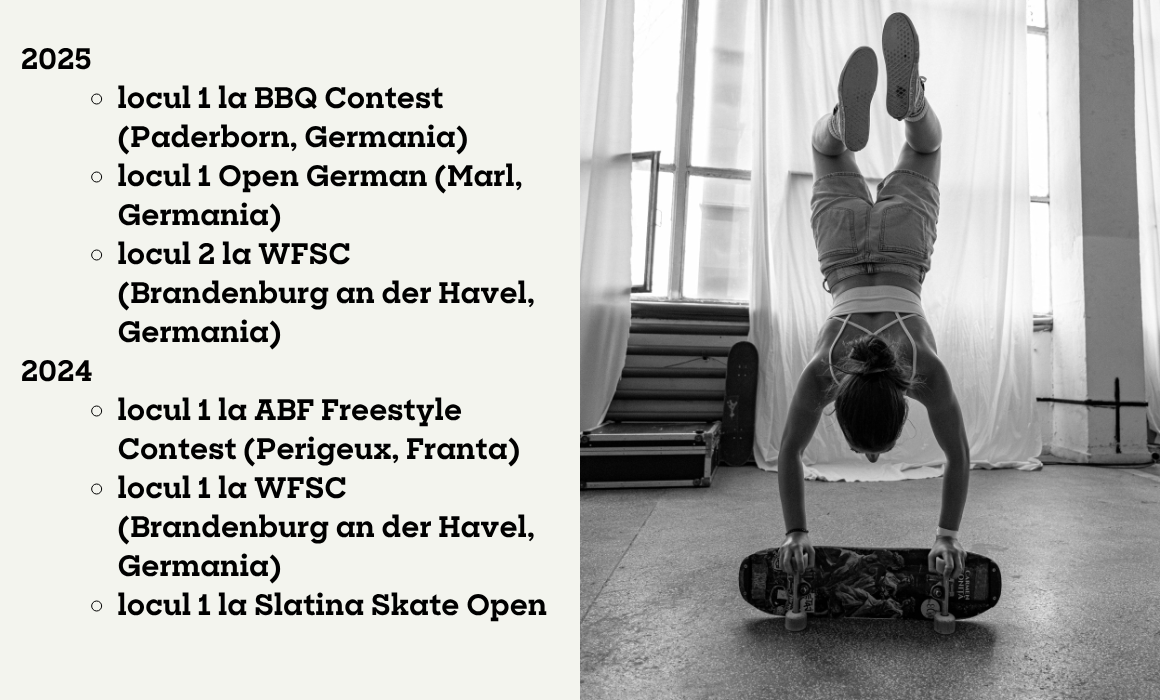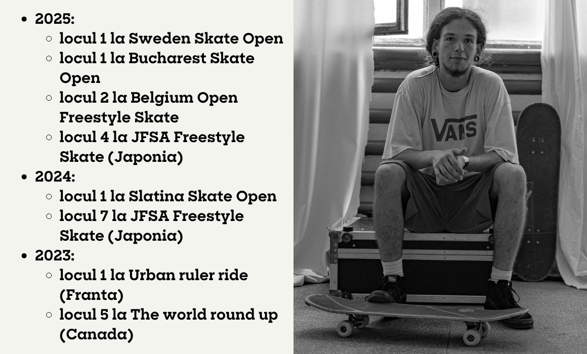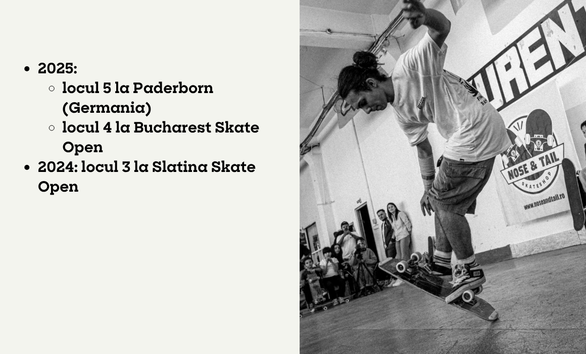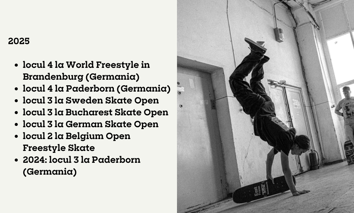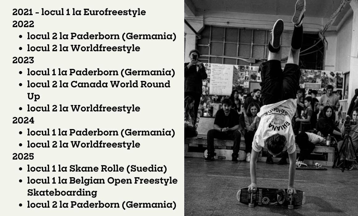 România are deja rezultate pe scena de freestyle globală: în 2025, sportivii noștri au participat la US Open, campionatul de la Paderborn (Germania) și Campionatul Mondial din Germania, campionatul internațional din Tokyo, Bucharest Skate Open, Belgium Skate Open și Open German Championship.