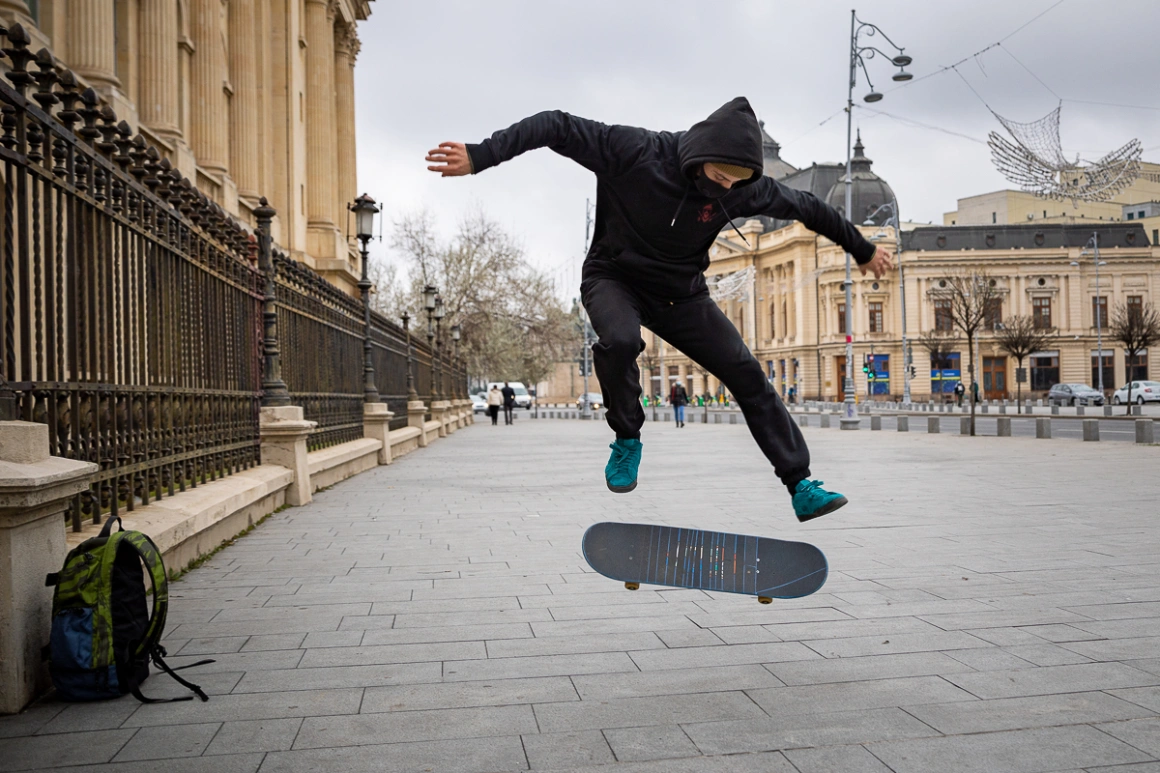 „Pentru mine fiecare bordură, fiecare stâlp, fiecare țeavă poate să fie un loc în care eu pot să revin și să mă dau acolo. Majoritatea oamenilor doar trec pe lângă și nu li se pare nimic deosebit acolo”, explică Răzvan cum își alege locurile.