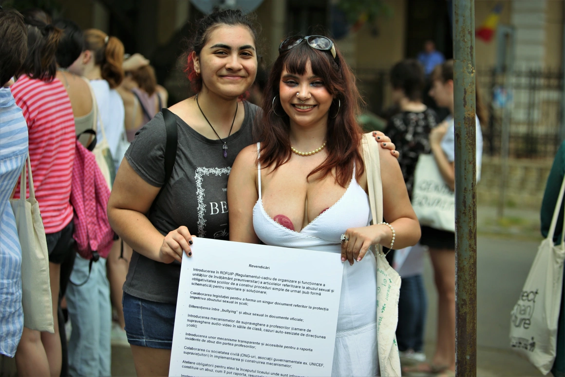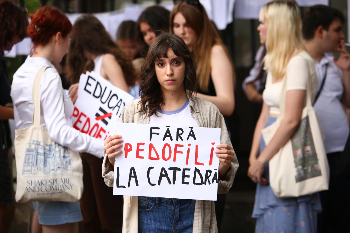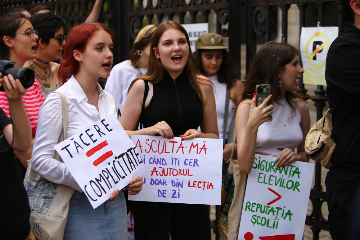 În jur de 60 de adolescenți şi tineri au protestat în după-amiaza de 8 iunie împotriva abuzurilor sexuale din şcoli, în fața Inspectoratului Şcolar al Municipiului Bucureşti.
