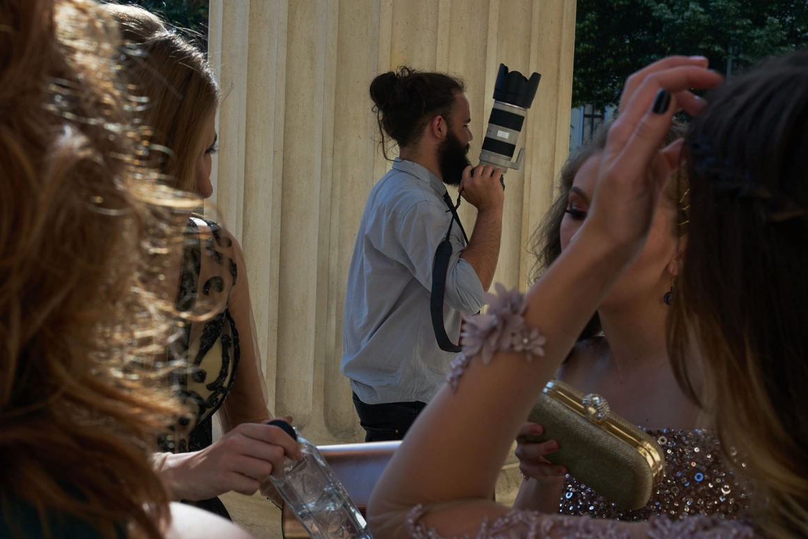 Primele baluri pe care le-a fotografiat Andrei au fost pe când era într-a X-a. I se oferiseră 100 de lei odată ca să vină cu aparatul, cu scuze din partea liceenilor că nu au mai mult. Andrei a spus „Sărut-mâna”, doar erau bani pe care-i primea, nu-i dădea. Alteori, i s-a oferit „promovare” pe pagina evenimentului. Deși s-au schimbat multe în felul în care-și alege Andrei clienții, un lucru e clar și neschimbat: îi lasă pe ei să-l caute. „Așa ai alt avantaj, negociezi altfel totul”, spune fotograful, „voi m-ați chemat pe mine, nu eu v-am rugat.”
