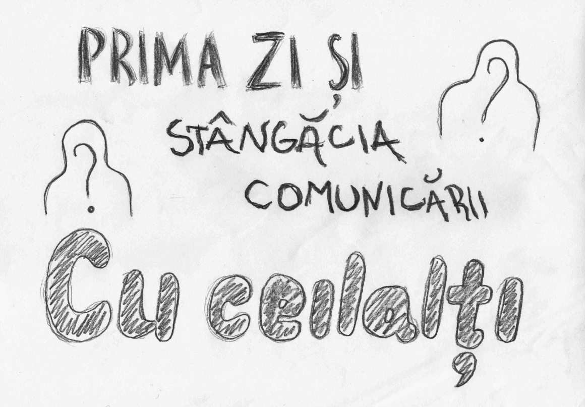 Sâmbătă a venit o doamnă psiholog care ne-a adus cartoane cu imagini. Am făcut câteva exerciții: am ținut câte doi o cariocă folosind fiecare un deget arătător și am scris primul cuvânt care ne-a trecut prin minte când am auzit „originalitate”. A fost un exercițiu util, am învățat sinonime noi. Pe urmă fiecare a primit câteva desene cu animale. Am format echipe de câte doi și am început să purtăm dialoguri: de exemplu, ce i-ar spune un pește unui urs. Ultimul exercițiu a fost să scriem o poveste pornind de la câteva cuvinte. Am început eu, pentru că îmi place să scriu. Am vrut să scriem o poveste realistă și simplă, dar ceilalți voiau să inventăm o poveste nemaiîntâlnită, lucru care pe mine nu mă încânta. Am lăsat pixul jos și m-am așezat într-un fotoliu. Psihologul ne-a întrebat cum a mers colaborarea și eu am spus: „Am început să scriu, dar eu am vrut să scriu ceva realist, pe când ceilalți au vrut ceva ficțiune, o poveste incredibilă, așa că m-am dat deoparte”. George, un băiat dintr-o altă echipă, a spus că ei vor să ilustreze realitatea sau așa ceva. Doar că textul lor începea cu extratereștrii plimbându-se prin spațiu și continua cu Gigi Becali și cu unul care face avere, iar apoi din cauza nevestei pierde tot.
