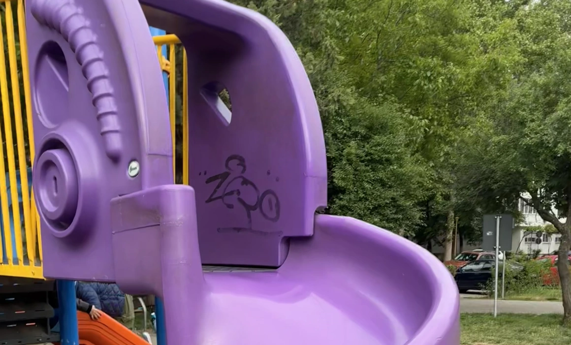Copiii se aleargă sau se dau în cele două leagăne pe care le au la dispoziție. Înainte era și un tobogan înalt, pe care se puteau da, dar primăria l-a înlocuit, în timp, cu un tobogan mic care s-a șubrezit. Pe o bancă stau doi elevi de școală primară și se uită la un telefon, așezat în mod landscape. Se joacă Brawl Stars, un joc pe care îl știu încă din generală.