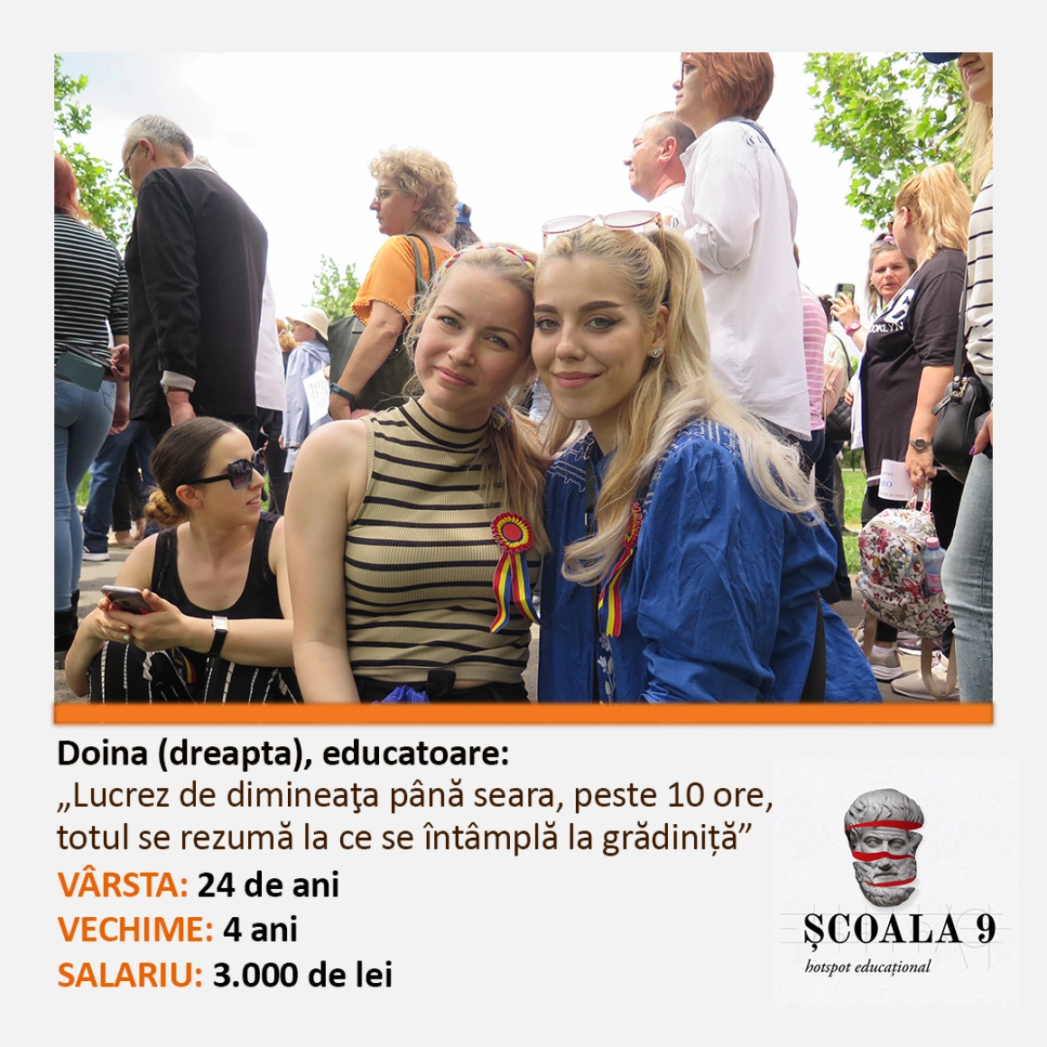 Doina, educatoare: „Lucrez de dimineaţa până seara la grădiniţă, peste 10 ore pe zi, şi totul se rezumă la ce se întâmplă acolo”