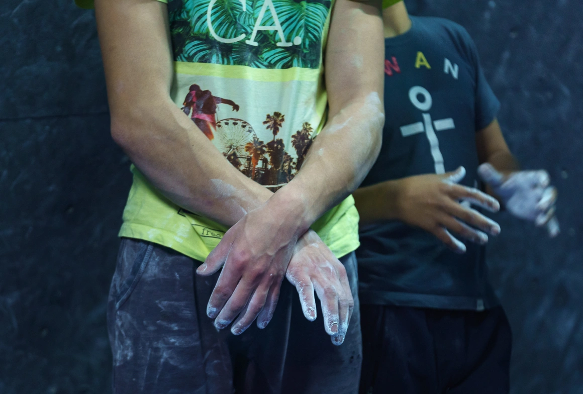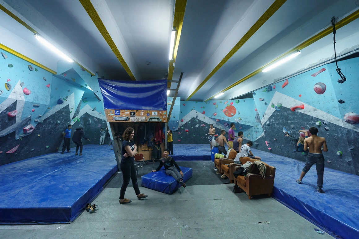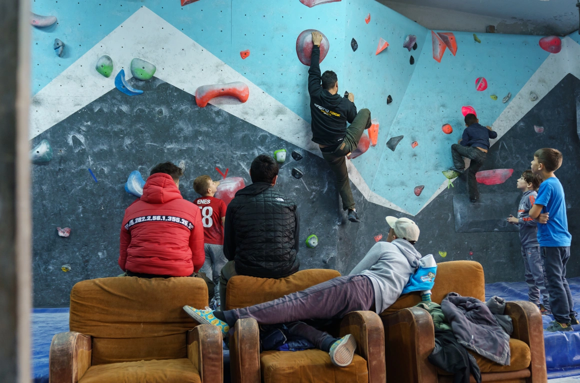 Copiii nu simt frigul. Își dau gecile jos, merg la dulăpiorul cu papuci de cățărat donați de producători sau de alte săli și cer măsuri de care unii adulți uită că există. Pereții devin o junglă, prizele liane, iar ei toți maimuțe și Tarzani neînfricați și elastici. Atârnă cu capetele în jos până li se scurge tot sângele în tâmple, stau în echilibru pe pereți în șpagat, se provoacă unii pe alții să facă trasee inventate pe loc. În curând, mirosul de transpirație și cel de praf de magneziu fuzionează, un semn constant c-acolo nu se stă, ci se muncește. Adolescenții stau pe fotoliile maro de la marginea saltelei, vorbesc între ei și se laudă cu antrenamentul lor de la 18:00; acolo „e greu” și „serios” și „de văzut”. Printre ei sunt și sportivii din echipa care colindă țara la competiții; unii dintre ei deja visează la campionate mondiale și lui Felipe i s-a mai spus că au potențial.