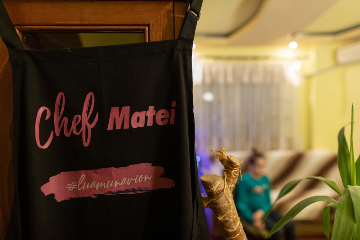 „Spaghetele pot fi modificate extrem de mult pentru a crea același fel de mâncare, dar cu un gust complet diferit”, explică Matei motivul pentru care îi plac pastele, ca un adevărat bucătar. La sfârșitul lunii noiembrie, Matei a gătit prima oară alături de un bucătar profesionist, chef Cezar Munteanu: au preparat paste cu prosciutto, piept de pui și parmezan. 10 porții de paste au fost licitate în timpul unui live pe Facebook, iar banii strânși au fost donați asociației Blondie.