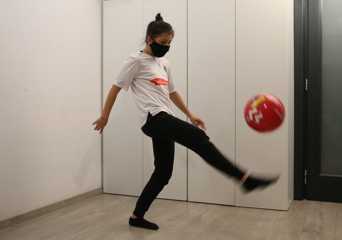 Într-un bloc din Sectorul 4, Iulia Manea încearcă să țină cât mai mult mingea pe picior. Se antrenează pentru întâlnirea cu Ioan Andone, care ar fi trebuit să aibă loc luna trecută, dar care a fost amânată din cauza pandemiei.