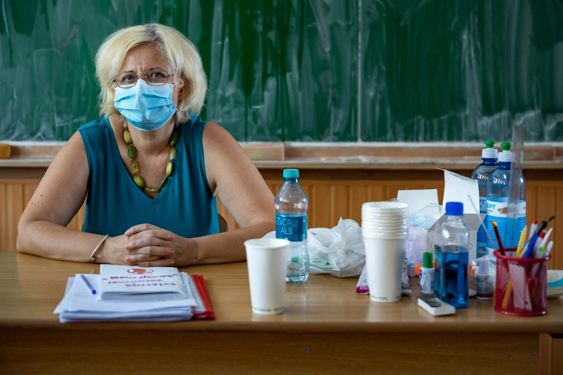 Își amintește că în prima zi de cursuri în contextul pandemic „îi tremura inima de frică“, pentru că nu știa care vor fi reacțiile elevilor, părinților.