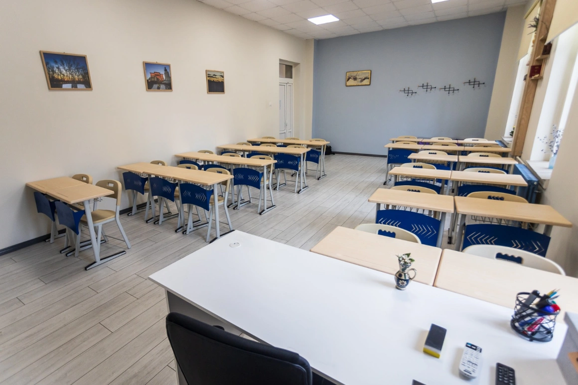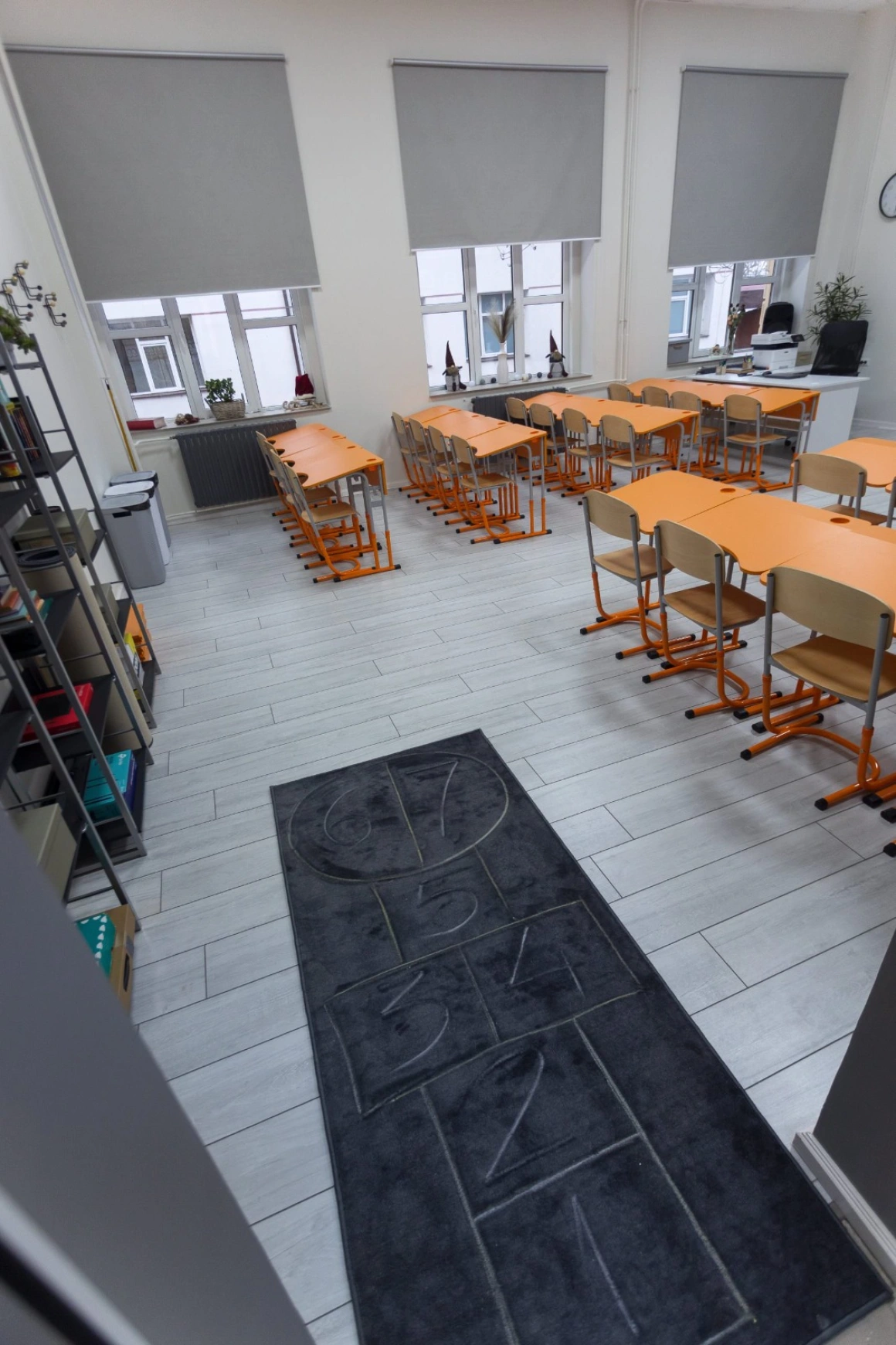 Băncile clasice au fost înlocuite cu elemente de mobilier modern, au fost schimbate jaluzelele vechi de când școala, corpurile de eliminat, a fost scos lambriul și au montat un parchet care să reziste anilor. În spatele clasei este o zonă în care elevii pot citi și unde au o bibliotecă de mici dimensiuni. În fiecare zi, aceștia pot lua cărți acasă, cu împrumut.