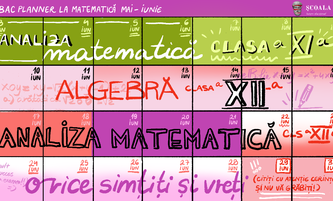 În ultimul BAC PLANNER la matematică din acest an școlar, profesorul Ovidiu Bădescu trece prin recapitularea întregii materii de bacalaureat, prin rezolvarea tuturor subiectelor, problemă cu problemă. Și, bineînțeles, cu explicații video la fiecare.