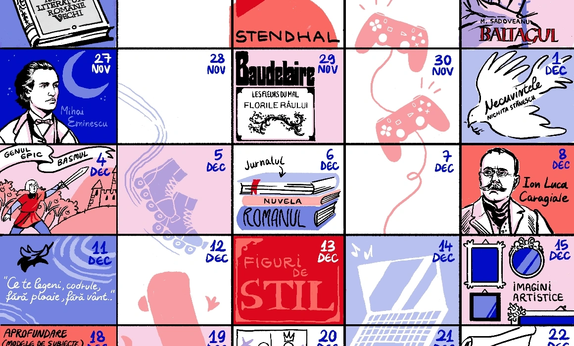 Sunteți cu 7 luni mai aproape de examenul de Bacalaureat și probabil simțiți că nu aveți suficient timp să recapitulați toată materia. În lipsa unei organizări clare, există riscul să lăsați totul la finalul clasei a XII-a și să îngrășați porcul în ajun, cum se spune. Așa că Școala 9 vă vine în ajutor: trei profesori au pregătit pentru voi un plan detaliat de învățare, pe săptămâni, la materiile principale de examen: Limba și Literatura Română, Matematică și Istorie. Vom publica articolele lor în primele trei vineri din lună, la începutul fiecărui modul școlar. Astăzi, profesoara Maria Melente vă ajută să vă așezați frumos cărțile pe birou pentru a parcurge, înainte de vacanța de iarnă, tot ce trebuie să știți despre curentele și genurile literare. Plus câteva tips&tricks ca să învățați ușor și eficient.
