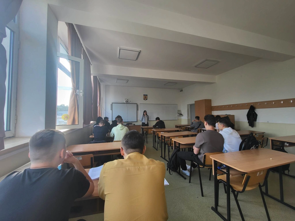 În ultima bancă, o singură elevă spune că și-ar dori să fie profesoară de engleză. „Îmi place ideea, mi se pare interesant. La salariu nu m-am gândit încă”, spune fata.