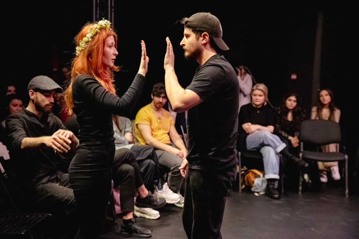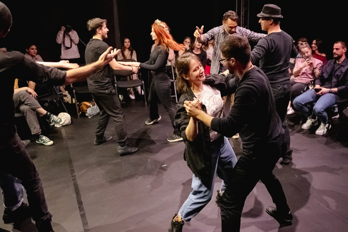 „Pe scaunele din față, nu vă face nimeni nimic”, este mesajul de întâmpinare către spectatori al Rominei Boldașu, prodecan la Facultatea de Teatru din cadrul Universității Naționale de Artă Teatrală și Cinematografică (UNATC) din București. Toți vor să se așeze pe scaunele cât mai departe de scenă.