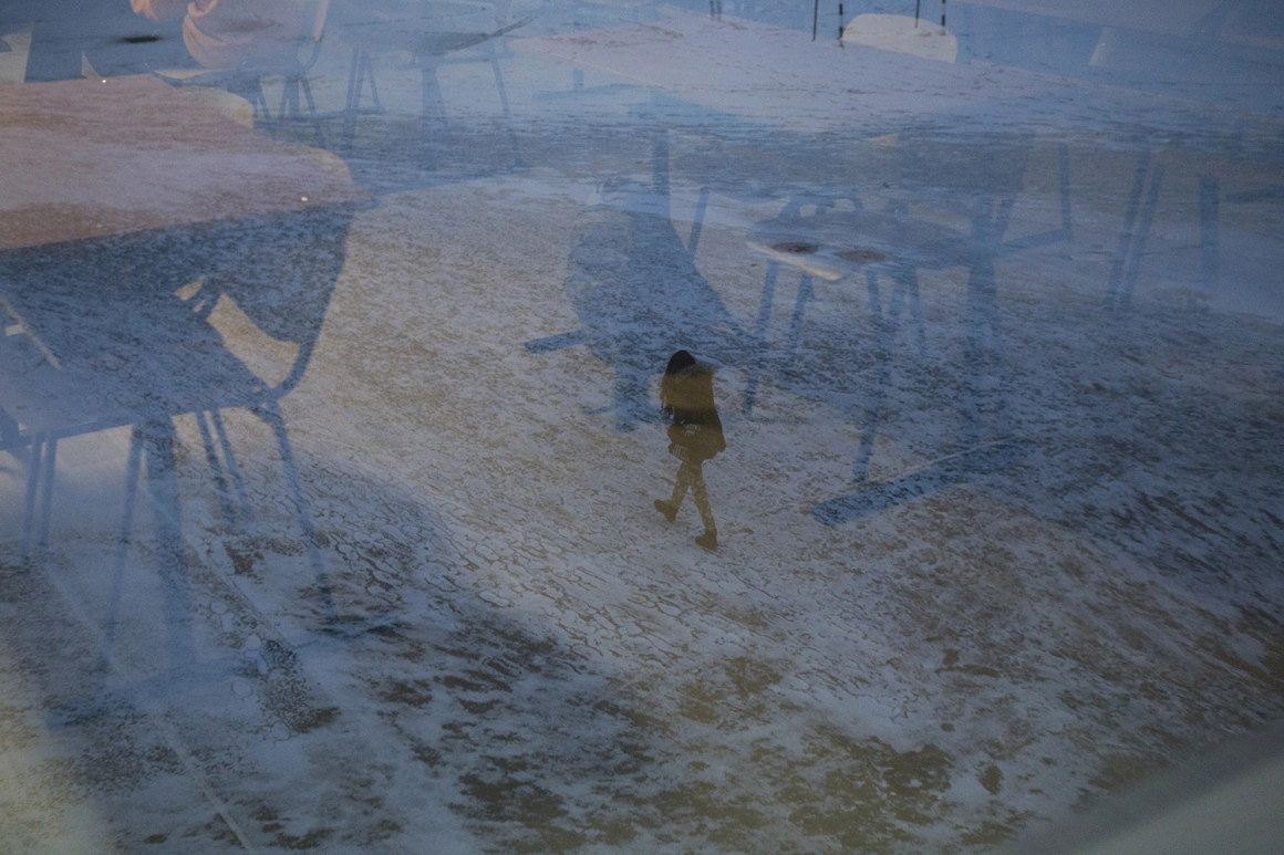 În scurt timp coboară din autobuz și merg câțiva zeci de metri către o nouă stație, și ea plină de oameni care aglomerează rapid și autobuzul 8, sosit cu geamurile aburite.