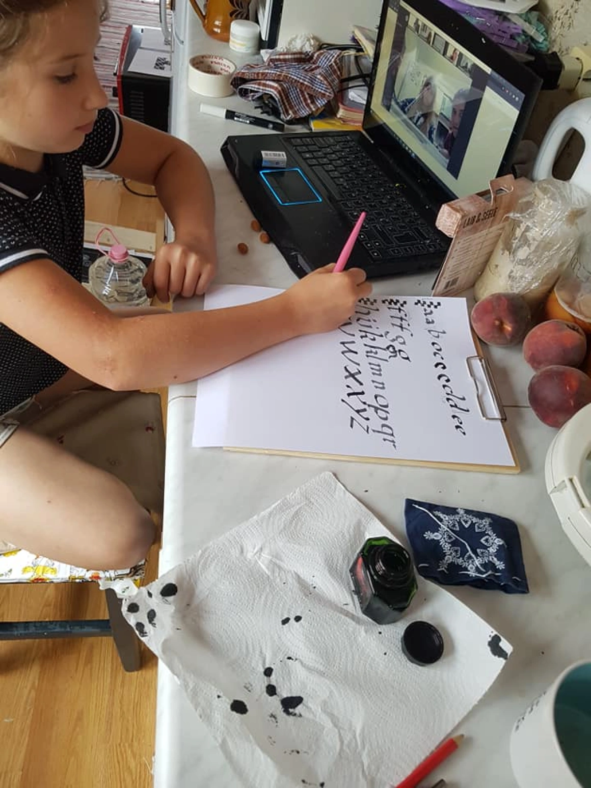 Zilnic, timp de cinci zile, (începând la 9.15 cu întâlniri de dimineață și încheind la 17:15 cu atelierul de caligrafie), 39 de participanți, de la doi la 58 de ani, din 29 de gospodării diferite (14 din Valea Jiului, 14 din restul României, unu din Republica Moldova) au venit la întâlnirile Zoom ale taberei noastre. Am ascultat povești frumoase împreună, am cântat și am dansat cu muzicieni profesioniști și am învățat împreună cum să facem artă frumoasă – hârtie făcută de mână, pâine cu maia, linogravură (procedeu de reproducere și multiplicare pe hârtie a unui desen săpat într-o placă de linoleum) și caligrafie – cu mâinile noastre, folosind materiale de calitate și cu ajutorul unor artiști talentați.