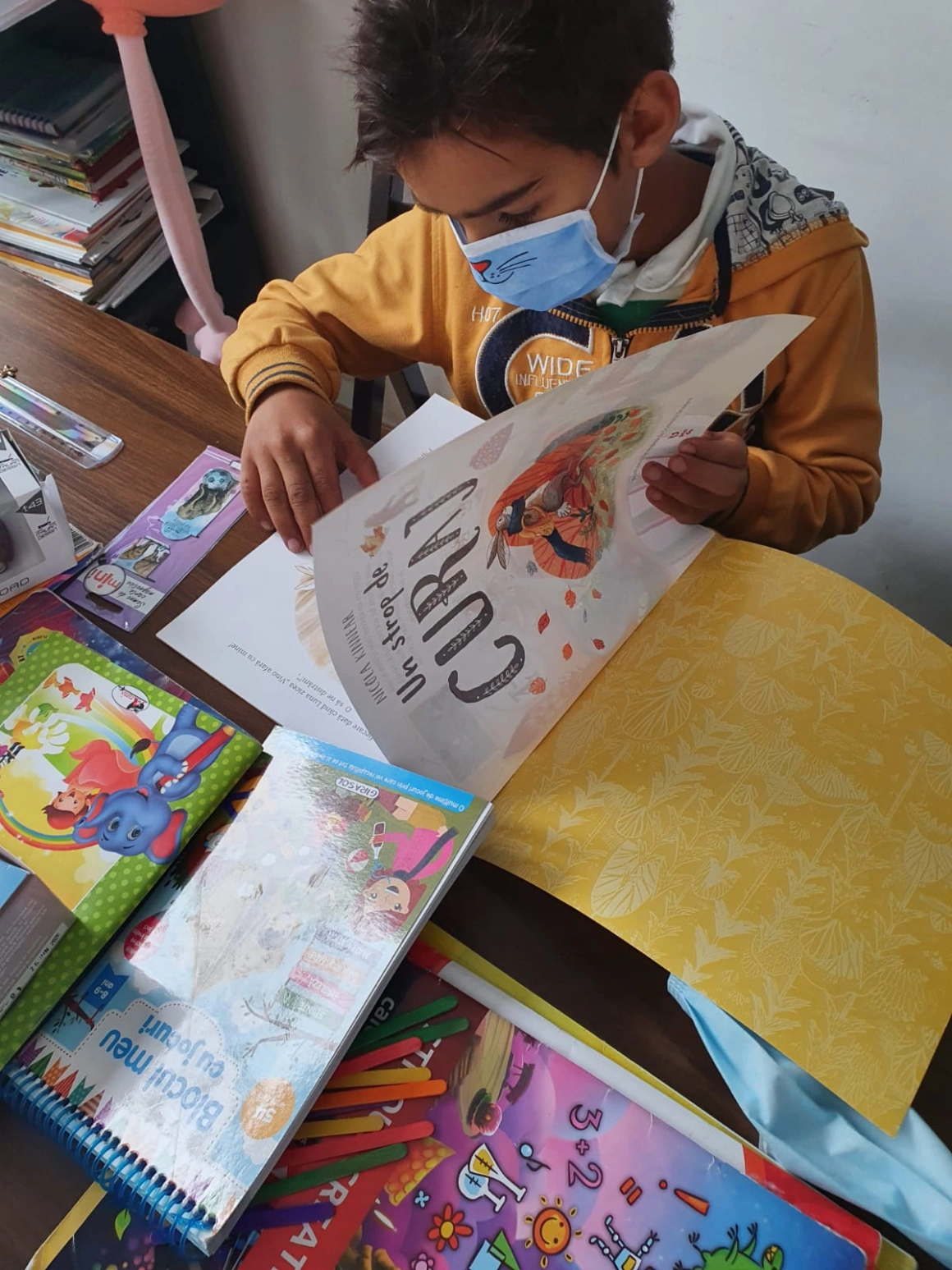 Pe lângă lecțiile pe care le face la „doamna”, Trandafir intră acum și la orele online. Colegilor le era dor de el și tot prin învățătoare i-au trimis câte un dar. „Chiar astăzi o colegă i-a cumpărat o carte care se numește «Curajul».”