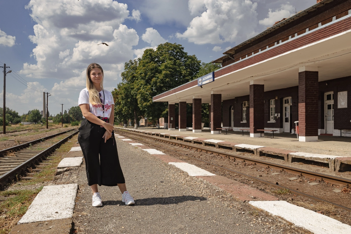 Anca Popescu, 21 de ani, în gara din Alexandria, de unde ia trenul spre București